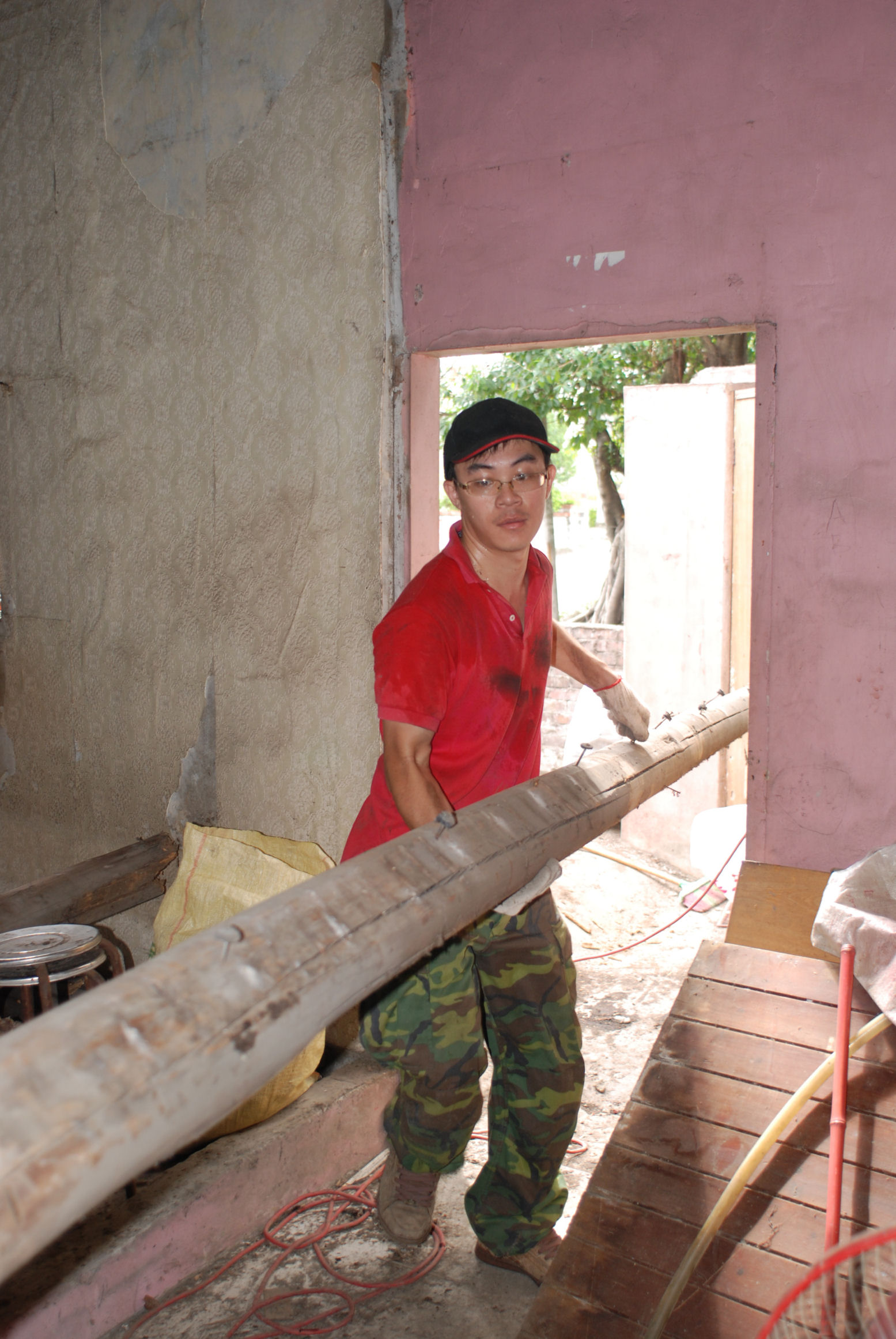 鋸掉了老朽傾倒的樹幹,才發現問題大了,層層浪板修修補補的屋頂,遇上大雨就滴滴答答;用粗糠和泥糊的土牆,早就成了蟲蟻的窩而灰濛濛;當成屋樑支撐的老竹,好像也撐不了多久。樂觀的我們,決定拆掉層層圍籬的破磚牆,拆掉違章式的窗戶,換上了新屋頂,讓陽光穿透水上小屋。多出了露臺,終年可以傾聽淘淘江水聲。