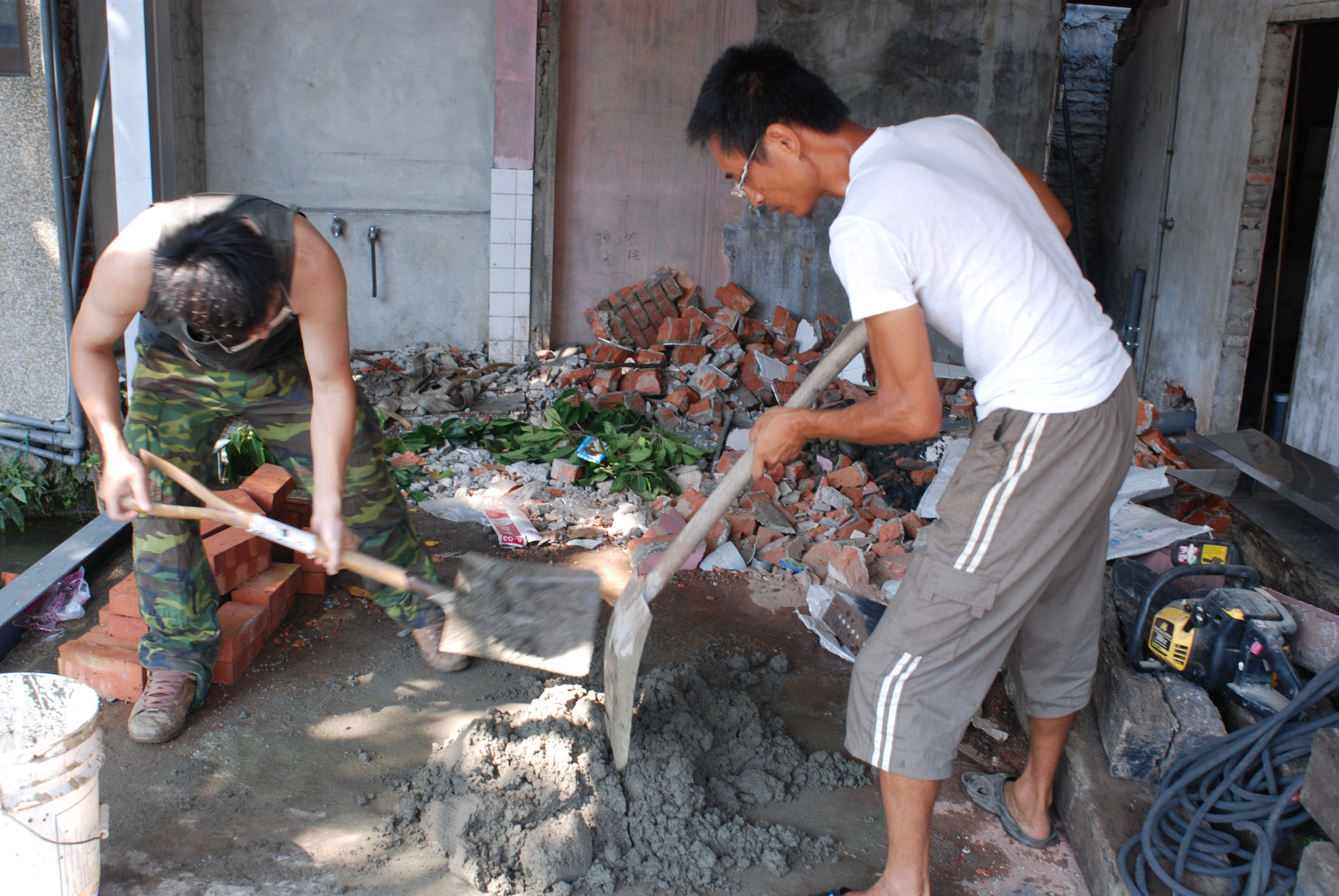 拆屋、泥作、清洗、打理、拉電源、作燈具,我們兩個在地的合夥人幾乎自己來,為了省錢,也為了感受老屋的需要,我們汗流浹背甘願做。當老屋煥然一新的風貌,在春風薄霧裡,屋裡透出的黃光,總讓我驕傲,我替破舊的紅磚牆,漆上了粉嫩的橘色,留著原來綠漆斑駁的鐵窗,配起來煞是好看。有錢可以蓋豪宅農舍、花大錢買名車,消耗資源來讓自己看起來稱頭點,但化腐朽為生趣盎然的鄉村空間,更能創造生活的樂趣。前者是肆意消耗農田資源而不可逆轉,而我們期望的是,保存先人的鄉村資產,延續新的生命價值。