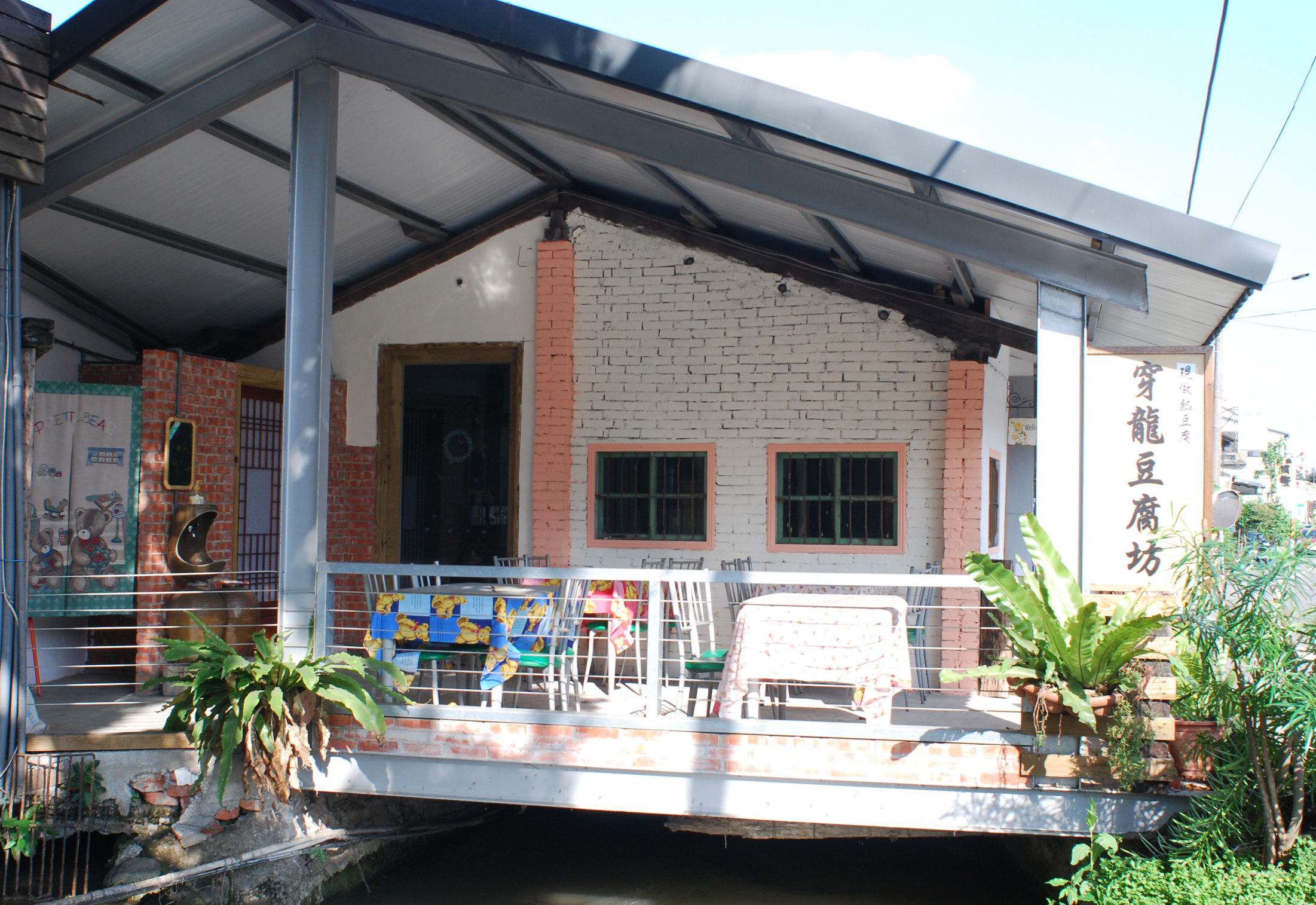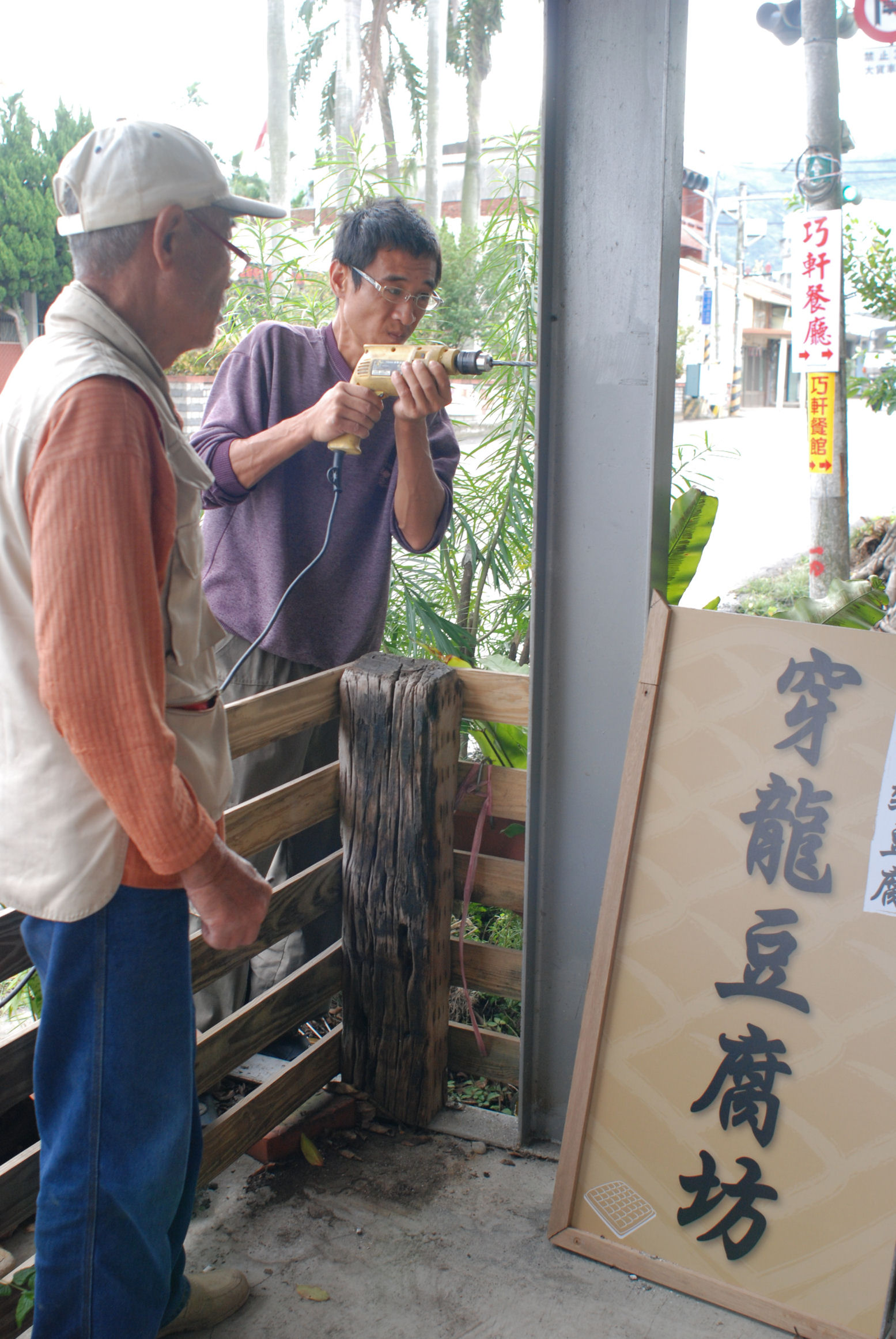 聽著整日嘩啦啦川流不息的水聲,那就叫做穿龍豆腐坊吧,後龍溪帶給我們動力,運用清淨水源,製作出食材新鮮、做工天然純淨的豆腐吧!同事幫我設計了我心目中,穿龍就該有的娟秀且幹勁的招牌字,老爸趁著雨天,埋首在車庫裡用回收的木框架把招牌做好,弟弟貢獻體力,合力把招牌換上。從這天起,我們改作熱豆腐。