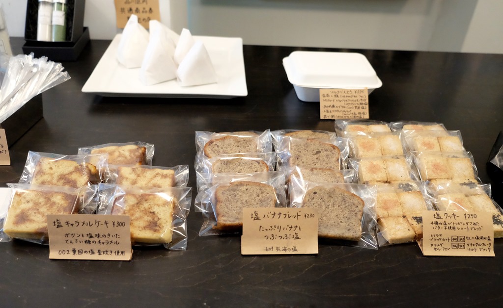 Solco最大的特色是每款鹽都能試吃。除了單獨品嘗鹽的味道,還能購買不含鹽的飯糰或可樂餅,每一口撒上不同的鹽,品味各種變化。店內也販賣鹽餅乾、鹽磅蛋糕、鹽起士蛋糕,富含礦物質的豐厚鹹味讓甜味變得更深奧,特別是鹽餅乾,吃過的人回購率幾乎是百分百。另外還有每日限量的鹽便當,簡單調理的蒸雞、煎魚、沙拉、水煮蛋,搭配不同種類的鹽,簡單卻好吃,深受附近上班族歡迎。