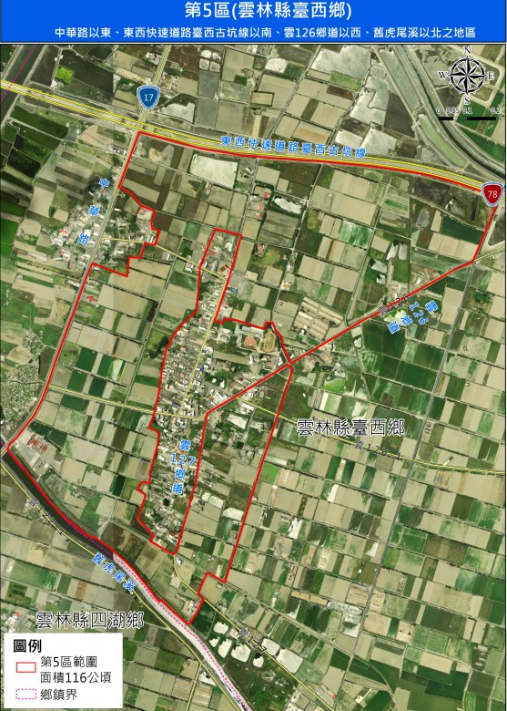 由於經濟部公告的嚴重地層下陷區大多數面積仍屬可耕作的優良農地,農委會在8月12日再次公告修正〈審查辦法〉內容,將範圍限制在「不利耕作之農業用地」和「黃金廊道」上,其中「不利耕作之農業用地」的範圍共有18區,包含雲林縣臺西鄉、四湖鄉、口湖鄉、嘉義縣東石鄉、布袋鎮以及彰化縣芳苑鄉、大城鄉等部分農地,面積約有1,253公頃,再加上高鐵行經彰化、雲林與嘉義沿線的黃金廊道8,306公頃,此次劃定不用結合農業經營就可建設光電大棚的農地就高達9,559公頃。