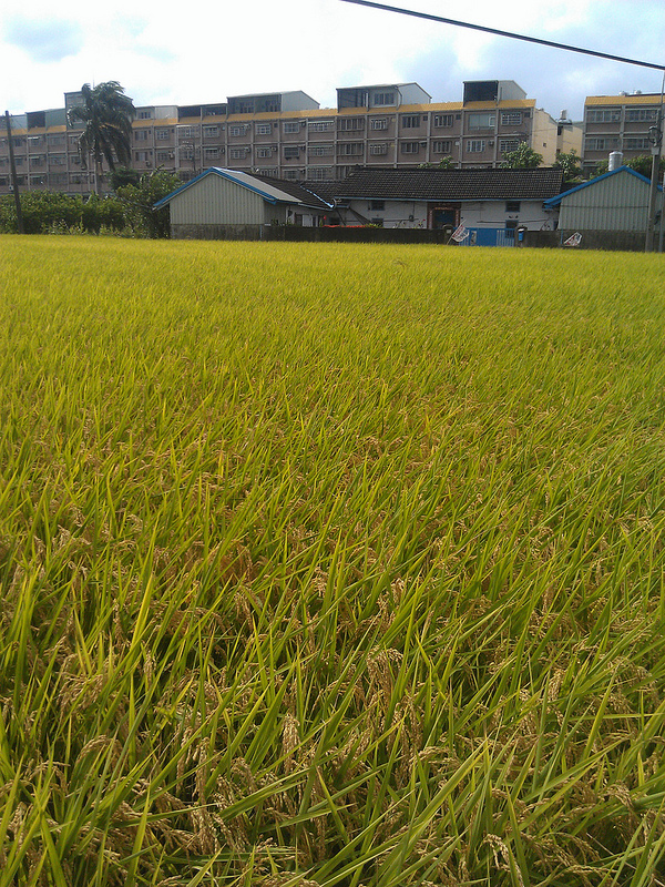 在寸土寸金,以水泥為林的城市裡工作,偶爾遇見一小片菜園:也許在陽台上的保麗龍箱裡、也許在待售出的土地邊、也許在小小山腳邊,都足以讓人開心這城市還有許多綠角落的可能。6/10參加了台灣本土文化書局舉辦的「田頭水尾的哀歌」,從大慶車站趕路到集合地點的途中截取了捷徑-穿越了一處待收成的稻田,金黃的稻穗垂首,步行在田埂上需要看清楚腳步,低頭步行的同時,周邊散發的是被曬暖的葉香、穀粒香,那一刻我回想起小時候在農村裡,同樣隨著風揚起的香味。於是開心起在這個被四周的公寓、別墅的包圍起的農地裡,還能種下一小片的稻田。