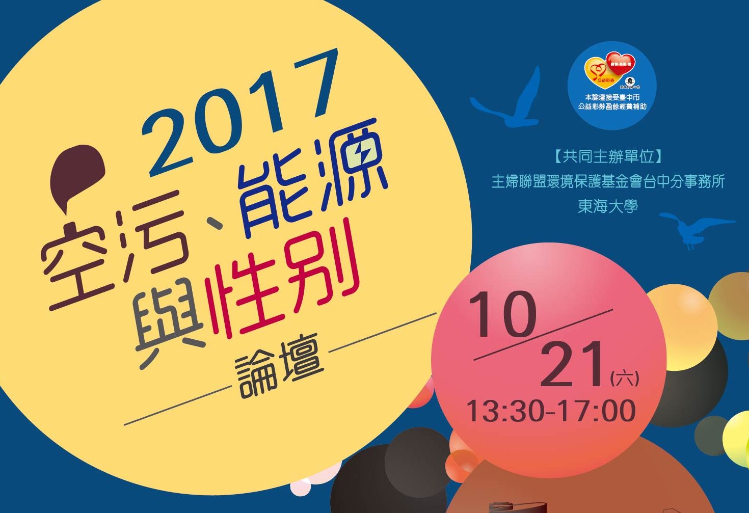 敬邀所有關心這個議題的朋友們,踴躍參與本論壇,共同思考如何增強女性發聲的管道與能見度,促進女性參與空污與能源轉型議題決策的性別平等,一起探討女性在空污與能源議題上扮演的角色與突圍的可能性。