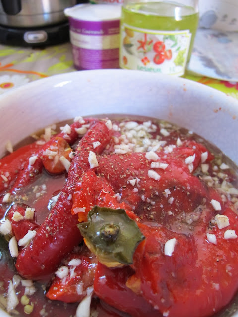 - 歐洲家庭常為了將當季的蔬菜保存以免腐爛掉或是日後還是可以享用到,他們常會用橄欖油來來醃製這些當季的新鮮蔬菜. 其中『油漬甜椒』就是其中的ㄧ種.可以ㄧ次做多ㄧ些 用橄欖油來油漬,油漬的『甜椒』它可以拿來當配菜,搭配義大利麵,排餐的配菜,沙拉裡的搭配菜….油漬甜椒的『橄欖油』可以 拿來直接做沙拉的Sauce用, 炒義大力麵的用油,沾麵包…. …味道清香, 香甜.很值得你動手做看看.