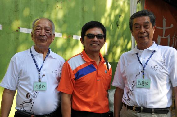 上圖:咖啡老頑童張景科(左,山海觀咖啡主人)與國宴咖啡達人劉慶松(右,重點咖啡主人),今年放下身段與新輩一同PK,此種精神讓水土保持局蔡金龍組長(中)及所有人深深佩服及感動。