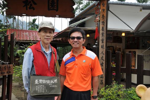 上圖:華山文學才子許鴻德(左,松園咖啡園主人)及水土保持局蔡金龍組長(右)相見歡。