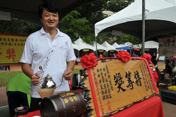 上圖:於雲林虎尾科大任教的水土保持局南投分局陳榮俊分局長(右),真的是桃李滿天下,這次咖啡節得力助手之一,正是陳分局長的學生,陳老師倍感欣慰及驕傲啊~