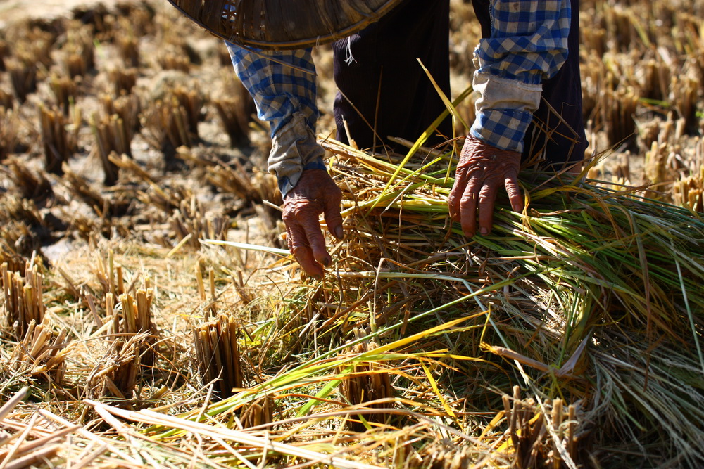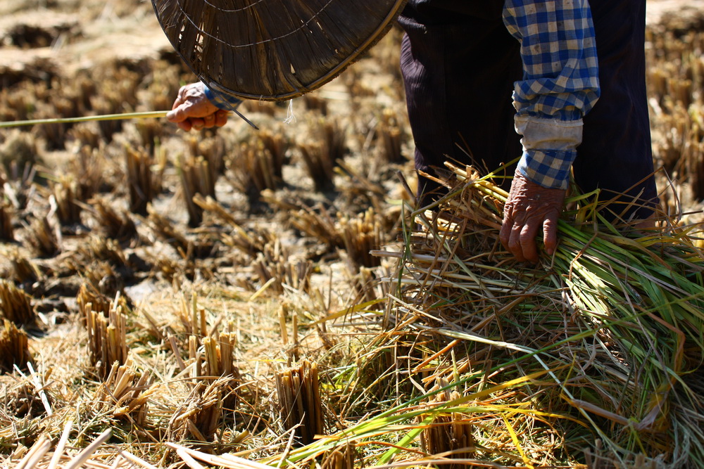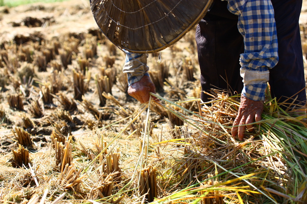 綁稻草,看似簡單,要綁的快又穩,需要多次的練習。