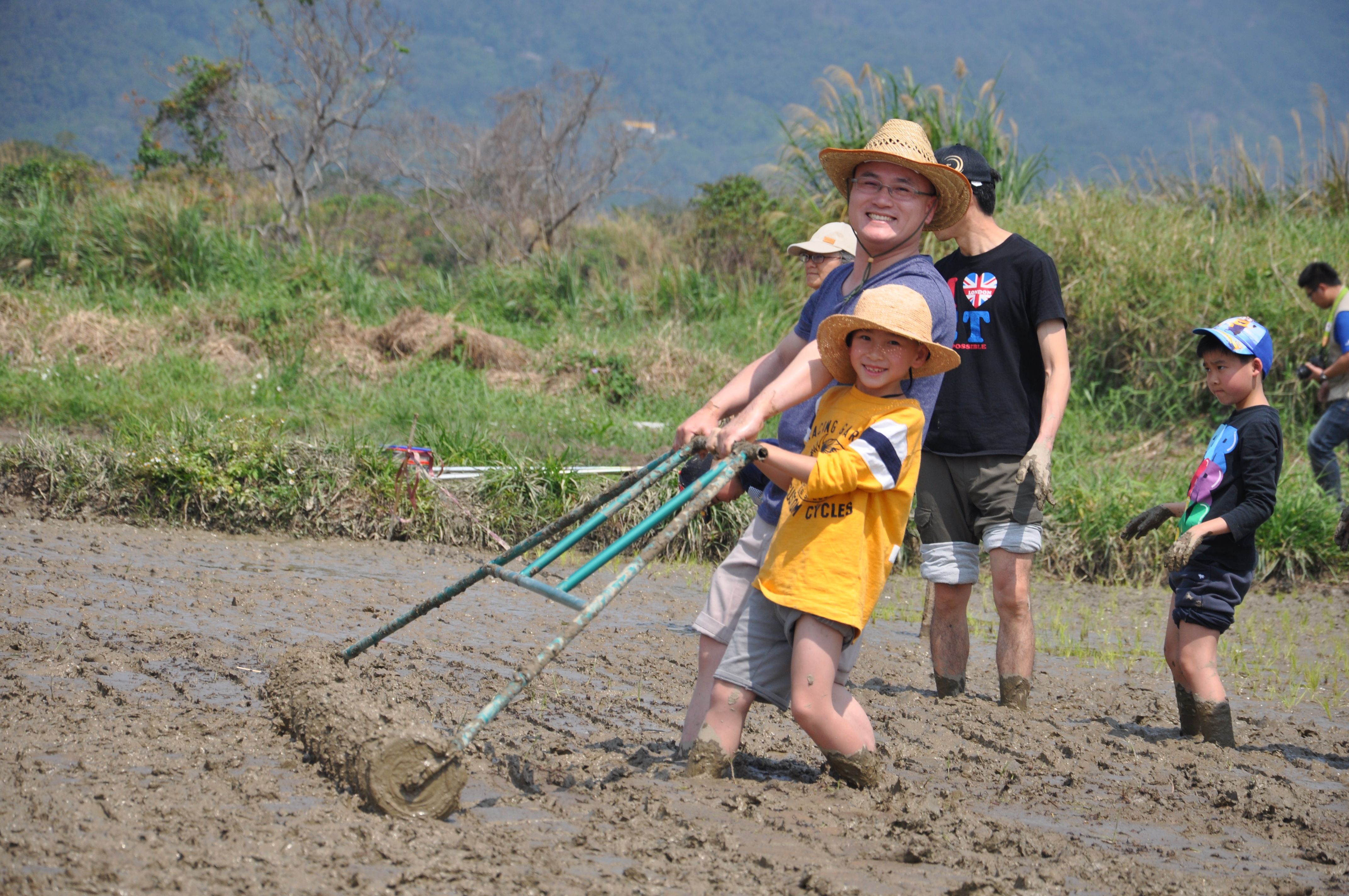 捲起褲管、踏入水田,整地、插秧、清理灌溉溝渠。