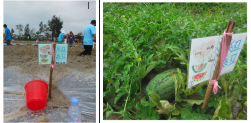 當天的成果如此豐碩,讓我不禁回想起當時,和女兒種下西瓜苗的喃喃低語:西瓜寶寶要乖乖長大喔!奇妙阿!奇妙!大地竟呼應了我們母女倆的傻氣童言,著實給予極大的驚喜。