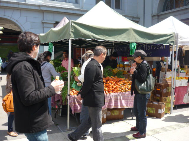 酷比這趟行程從西岸的舊金山登陸,幾經蒐尋過後,發現在舊金山最著名的農夫市集是在”Ferry Building”外面的”Ferry Plaza”,它就位於舊金山最熱鬧的灣區。根據網站上的資料,市集在1992年的9月份就開始營運,也就是說,迄今已經快要10年囉!即使他們是非營利事業組織,他們在網站及相關的軟硬體製作上可以說是相當用心,官方網站上看到的資訊就有很多可以讓大家參考(http://www.cuesa.org/markets),硬體上面的話也不遑多讓。不過話說回來,他們花10年,我們有沒有辦法可以比他們更快一點?