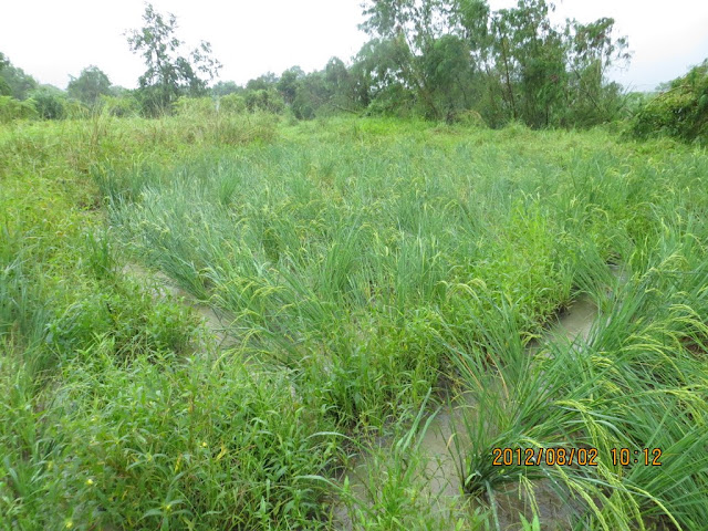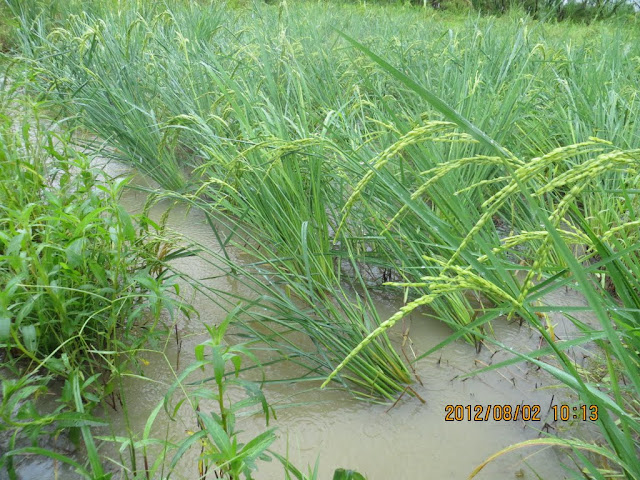 除了天天去探探水稻小孩長大了沒有,還有再加上顧水跟除草,終於在七月中時慢慢的開始出穗……沒想到這時卻遇到蘇拉颱風的侵襲。