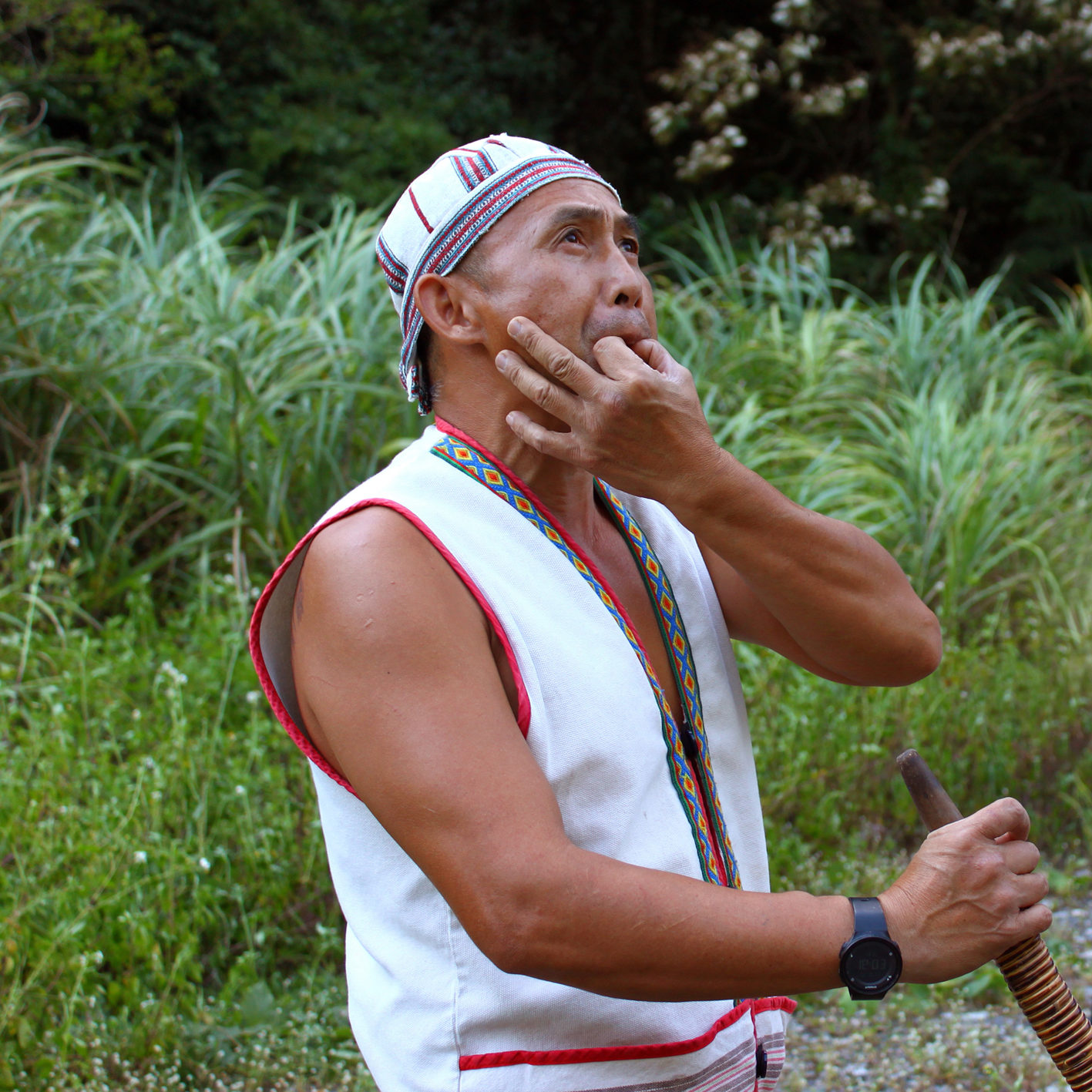 位於芃芃溪畔的英士部落,一座以自然工法打造的傳統竹屋,傳來了族人嘹亮的歌聲,伴隨著一旁炊煙裊裊的烤火與木鼓清脆的節奏,年輕族人先以一曲《Rimuy Sola Rimuy Yo》歡樂歌迎接遠道而來的遊客,再以合唱及獨唱交錯的《Ima lalu su》(你叫什麼名字),依序介紹每人的族語名字。