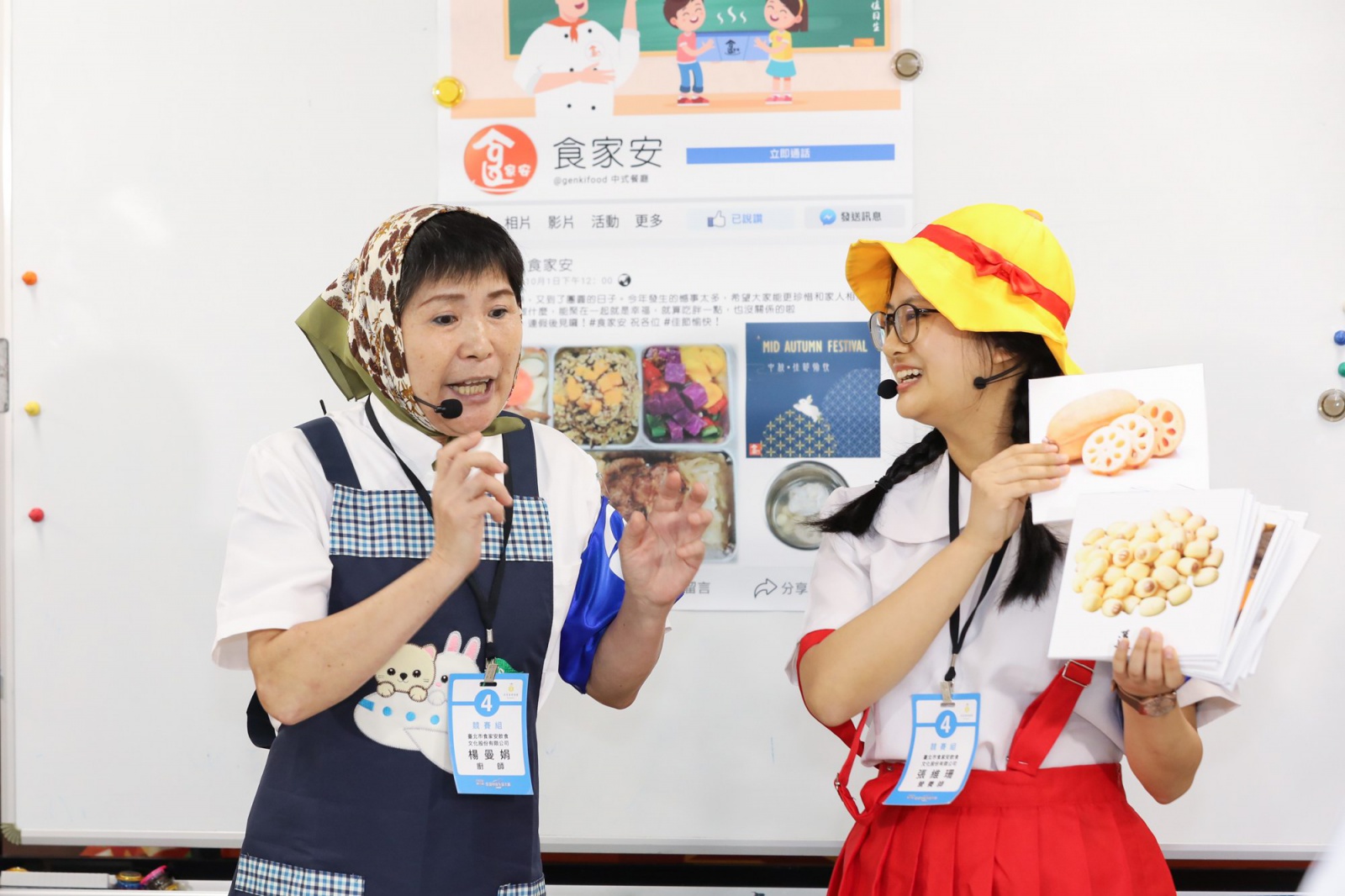 圖說:食育教學比賽現場。(左起:楊曼娟廚師、張維珊營養師)