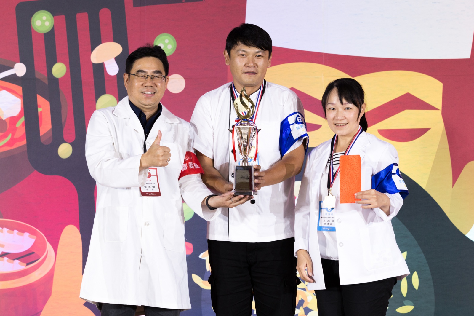 圖說:台中市大仁國小榮獲全家便利商店商品化獎。(左起:全家便利商店鮮食部黃正田部長、葉峻豪廚師、王思萍營養師)