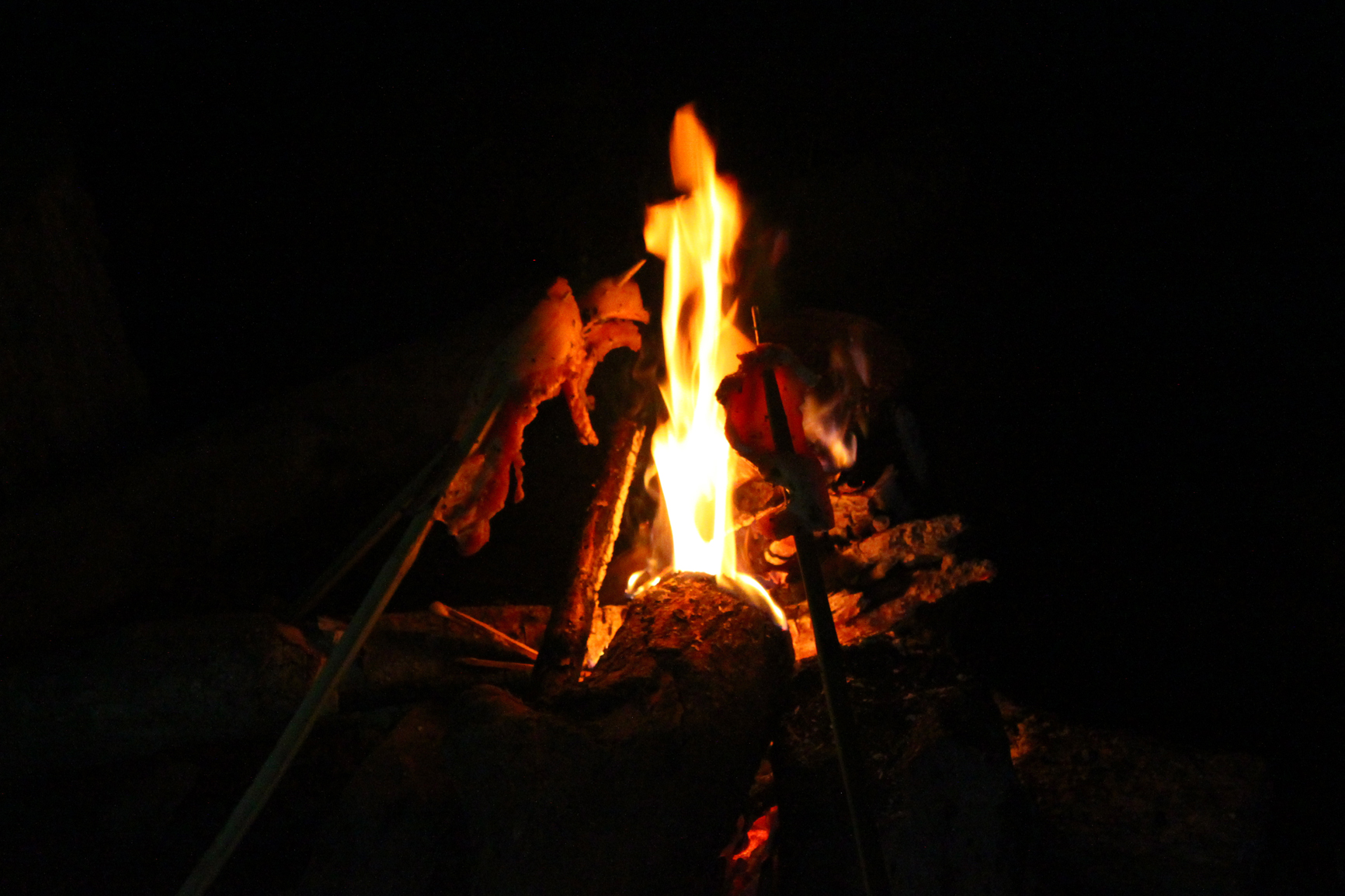 隨著獵寮裡的炊煙裊裊升起,煙燻味夾雜著肉汁的油脂香氣,一串串山豬肉的外皮已烤至金黃酥脆、油香飽滿,以馬告與刺蔥醃漬入味的肉串搭佐上午DIY的竹筒飯,以及山豬奶奶自釀的小米露,一日的獵人遊程就在滿足的味蕾之中畫下句點,結束相當充實的一天。若對樂水部落的獵人遊程感興趣,不妨聯繫FB粉專 「山豬爺爺」唷!