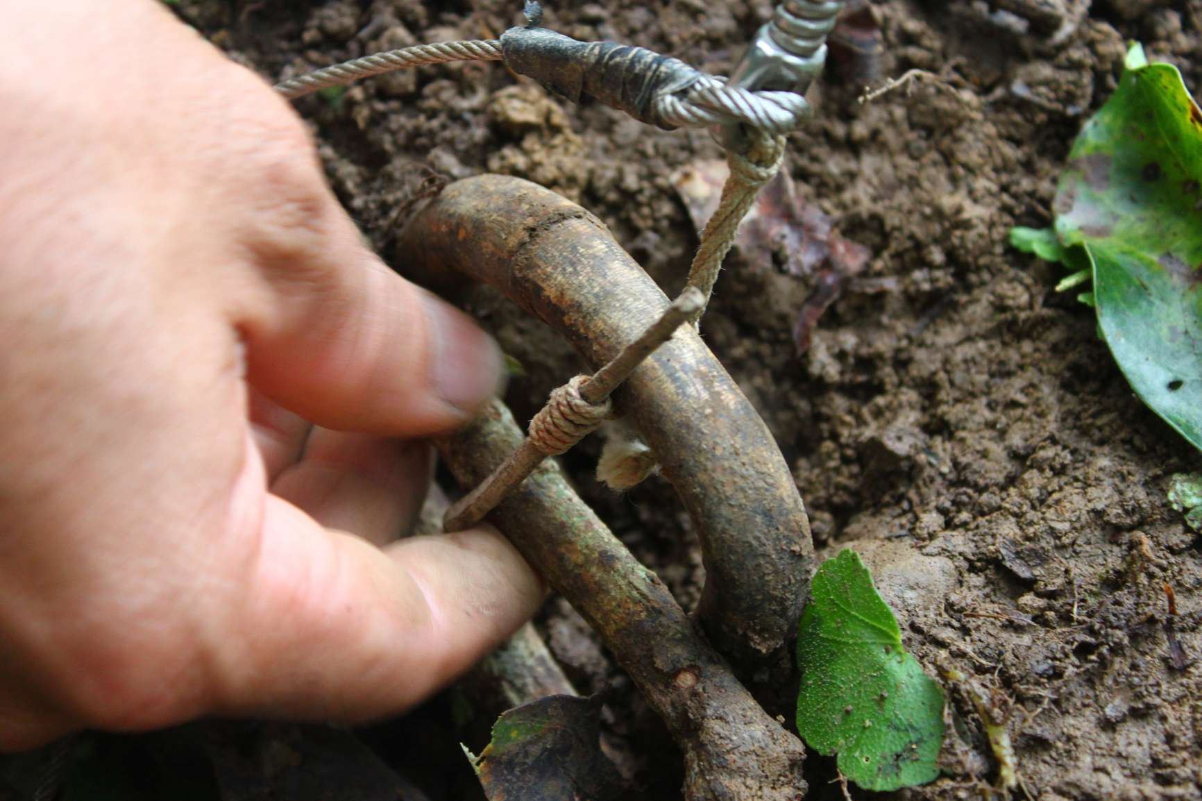 抵達獵寮後,山豬爺爺將桂竹削製為竹籤,山豬奶奶則將事先醃漬好的山豬肉一一串起,就著石塊砌成的三角灶烤肉,一旁孩子在樹下盪鞦韆,大人們著迷於射箭體驗。接著山豬爺爺向遊客示範泰雅族傳統陷阱的製作原理,並用樹枝仿擬山豬誤踩陷阱的情境,當鋼線瞬忽彈起的那一刻,讓人不得不驚嘆於昔日獵人的設計巧思。