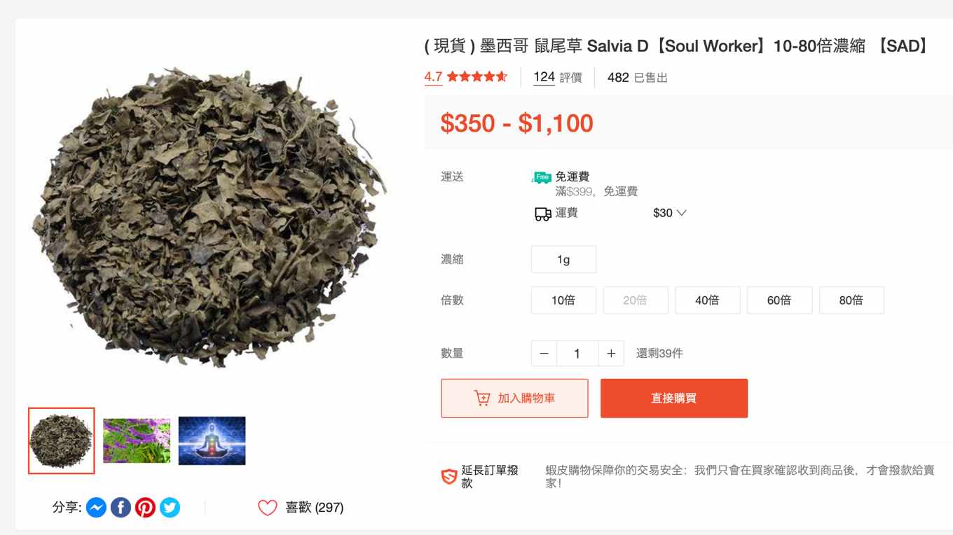 網路電商隨時可購買墨西哥鼠尾草,吸食心得處處可見