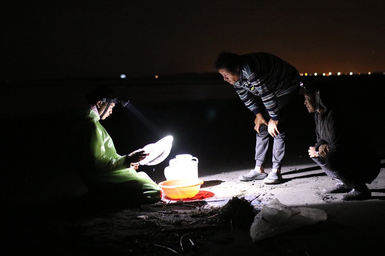 「但是今年還沒有鰻苗,不知道為什麼?可能還要再等等,大潮或者天冷,會讓鰻苗靠近的。」灘地上人人都抱著同樣的期待,日復一日等待豐收的捷報。