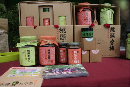 桃源香梅產品:活漾梅精(650元)、功夫脆梅(250元)、風味Q梅(250元)、健康梅醬(200元)。