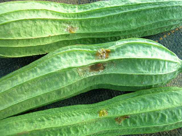 至於絲瓜會出現苦味,王俊能表示,尤其稜角絲瓜,在栽培期間遇上缺水等環境逆境,長出的果實就容易變苦。果實出現傷口或者存放太久,苦味也會比較明顯。「可能是絲瓜會產生植物鹼等物質,讓果實會有苦味。」他呼籲消費者不要購買有明顯傷口、皺縮外觀的絲瓜。