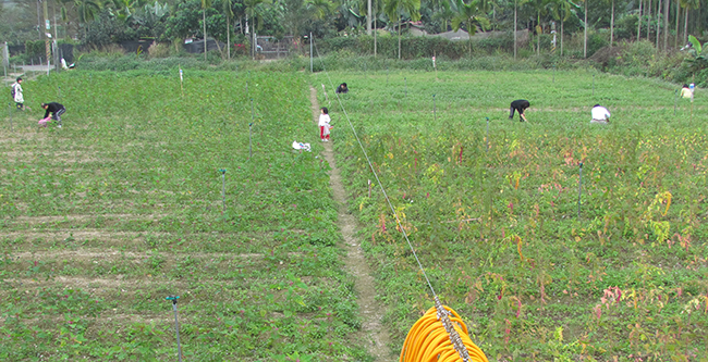 可樂穀農場2012年的第1章,從農場基礎設施開始,目前全球氣候經常有極端情況產生,台灣也難逃在外,乾旱的時間常超過農曆節氣的算計,瞬間雨量卻又輕易地打破歷史紀錄,不管紅藜(台灣藜)或印加藜麥都特別怕泡水,所以種植之前先把排水溝挖好,做好排水設施防止超大豪雨來襲時,作物因泡水而病變腐爛,另一方面又要安裝水管,在久旱不雨時適時灑水,不管大雨或大旱都要作足功課。