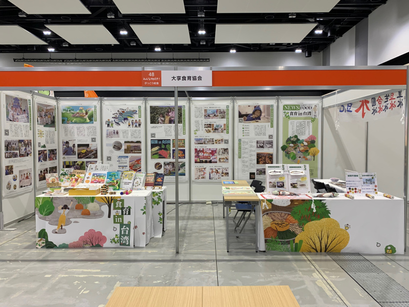 大享食育協會今年以「食育IN台灣」為出展主題,在攤位上展出8大主題包含台灣學校午餐歷史、台灣學校午餐大賽、多媒體食育推廣、食魚教育、國產雜糧教育、高雄市食農教育推廣、全家料理王比賽,呈現台灣的食農、食魚教育,以及學校午餐、料理實作的食育經驗。