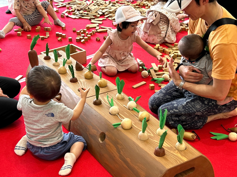 【圖5】縣產積木遊戲區擺放各種木製食材教具吸引大批小孩入內玩耍