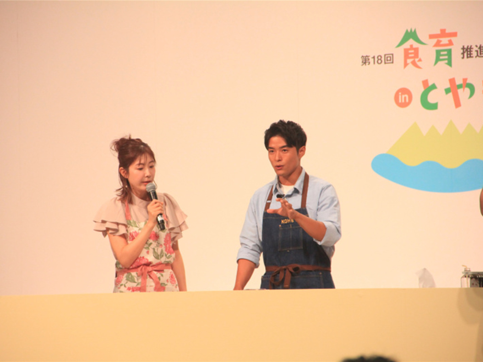 除此之外,還有深受家庭主婦、料理職人喜愛的烹飪活動,大會邀請出生於富山縣的知名演員安田美沙子女士及池田航先生,為大家示範人人可輕鬆完成的營養料理、單人家庭料理,也吸引許多人前來參加,這兩位演員也皆取得食育講師的資格,顯示食育在日本人的生活當中重視的基本技能。