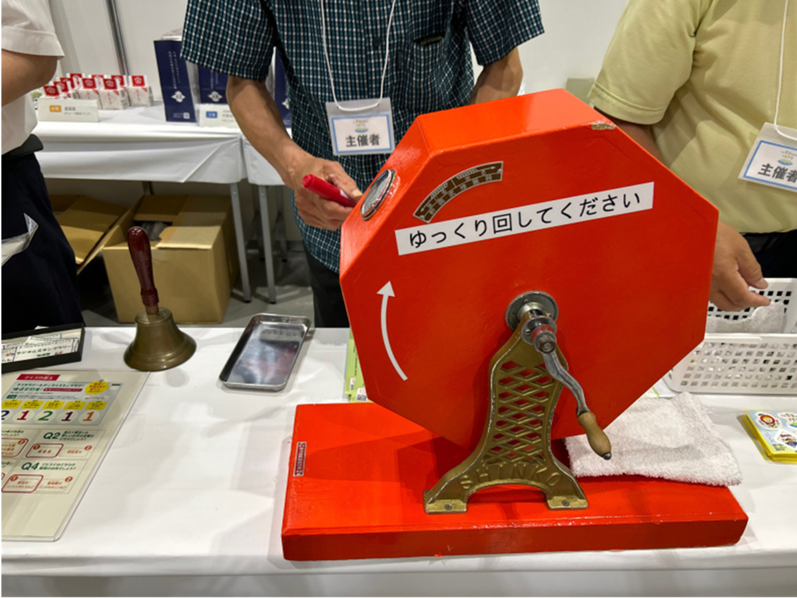 大會也增設活動抽獎環節,以大會手冊封底的五個Q&A題目,選出正確的答案蓋章後,就可以透過日本傳統搖獎機(福引き)抽獎,兩天下來真的有民眾抽中大獎,搖鈴聲響徹整個展場,一等獎為珍貴的日本和牛、二等獎為富山縣水產品、參加獎則是大會的周邊文創商品。