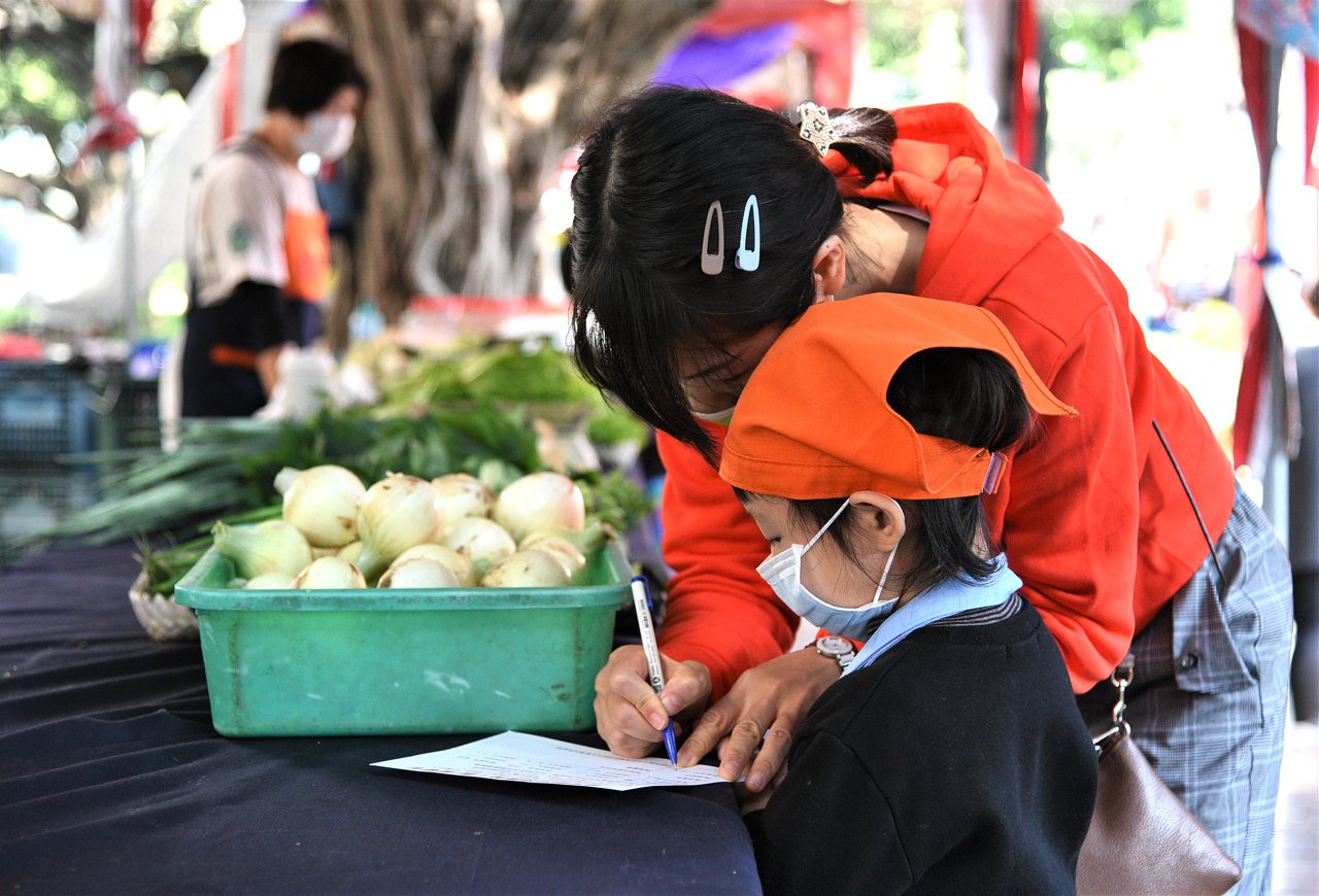 為維持、拉抬農夫市集的營業額,興大有機農夫市集也針對半徑三公里內的幼兒園,進行食農教育。楊文仁表示,食農教育其中一個環節便是帶幼兒來逛農夫市集,執行結果發現,客群明顯增加。
