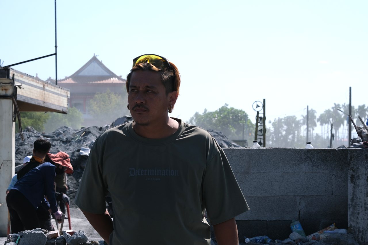 光復鄉大平村原本與花東縱谷多數村里無異,稻田綿延,椰子與香蕉隨風搖曳,是許多人嚮往的田園風光。如今村內,尤其是佛祖街一帶,彷彿來到另一個世界——灰撲撲一片,塵土漫天,大石小石亂堆成丘,夢想中的清朗與寧靜,如今只剩下斷垣與沉重的靜默。