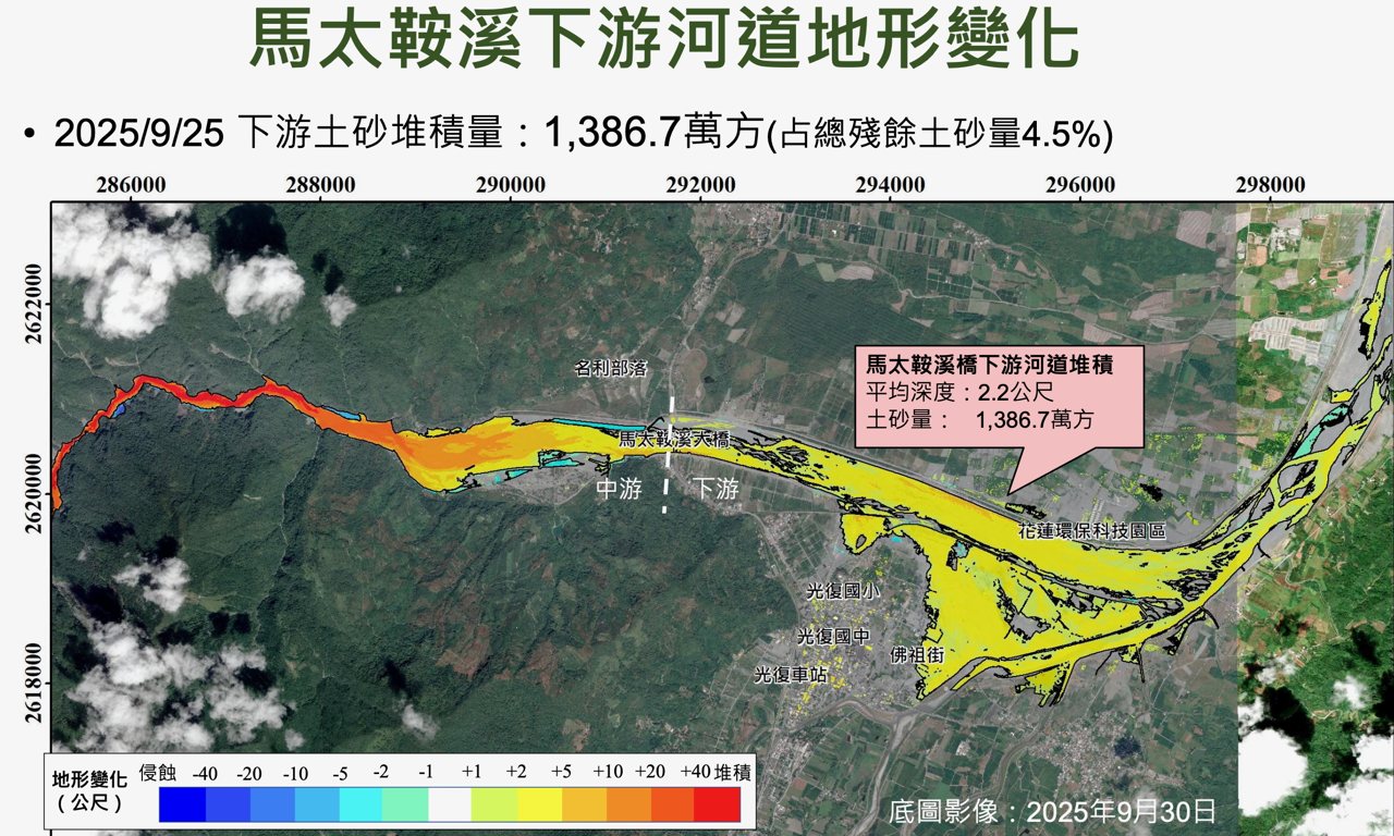 光復災後的紅色警戒將持續兩年,且範圍可能會再擴大,目前堰塞湖潰壩沖下了 1000 萬方土方,但上游還有 2 億方。且河床積高、堤防沖毀,疏濬築堤工程趕工中,未來日雨量只要超過 200 毫米,就會發佈避難警戒。