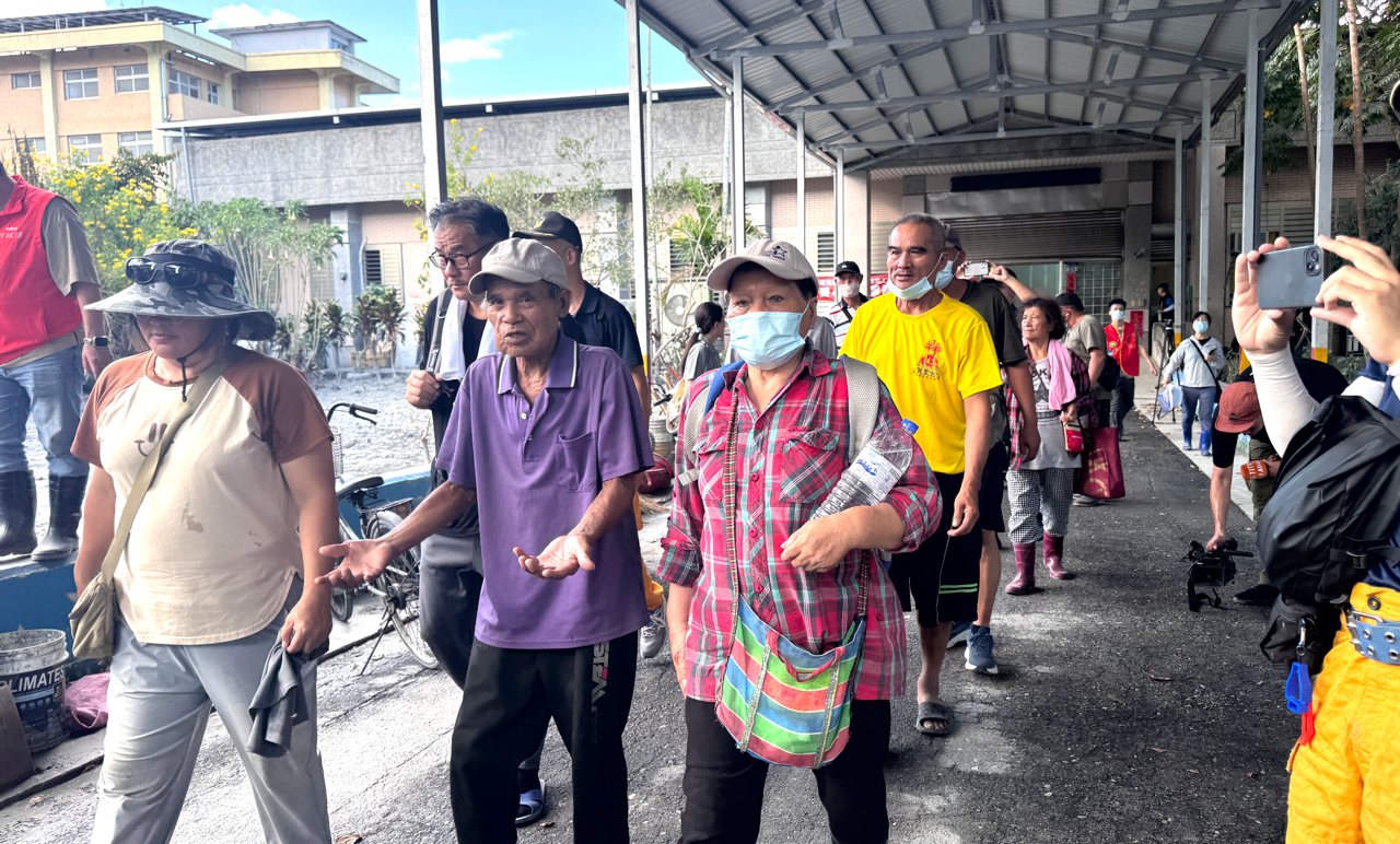 其實在簡訊發送前,已有民眾提前前往收容中心。大安村居民馬素娥吃過午飯便帶著避難包抵達大進國小,她說,堰塞湖溢流的噩夢至今仍讓她夜夜難眠,「演習一定得好好配合。」中華路居民李遺龍也帶著兒子騎車前來,兩人都準備好避難包。