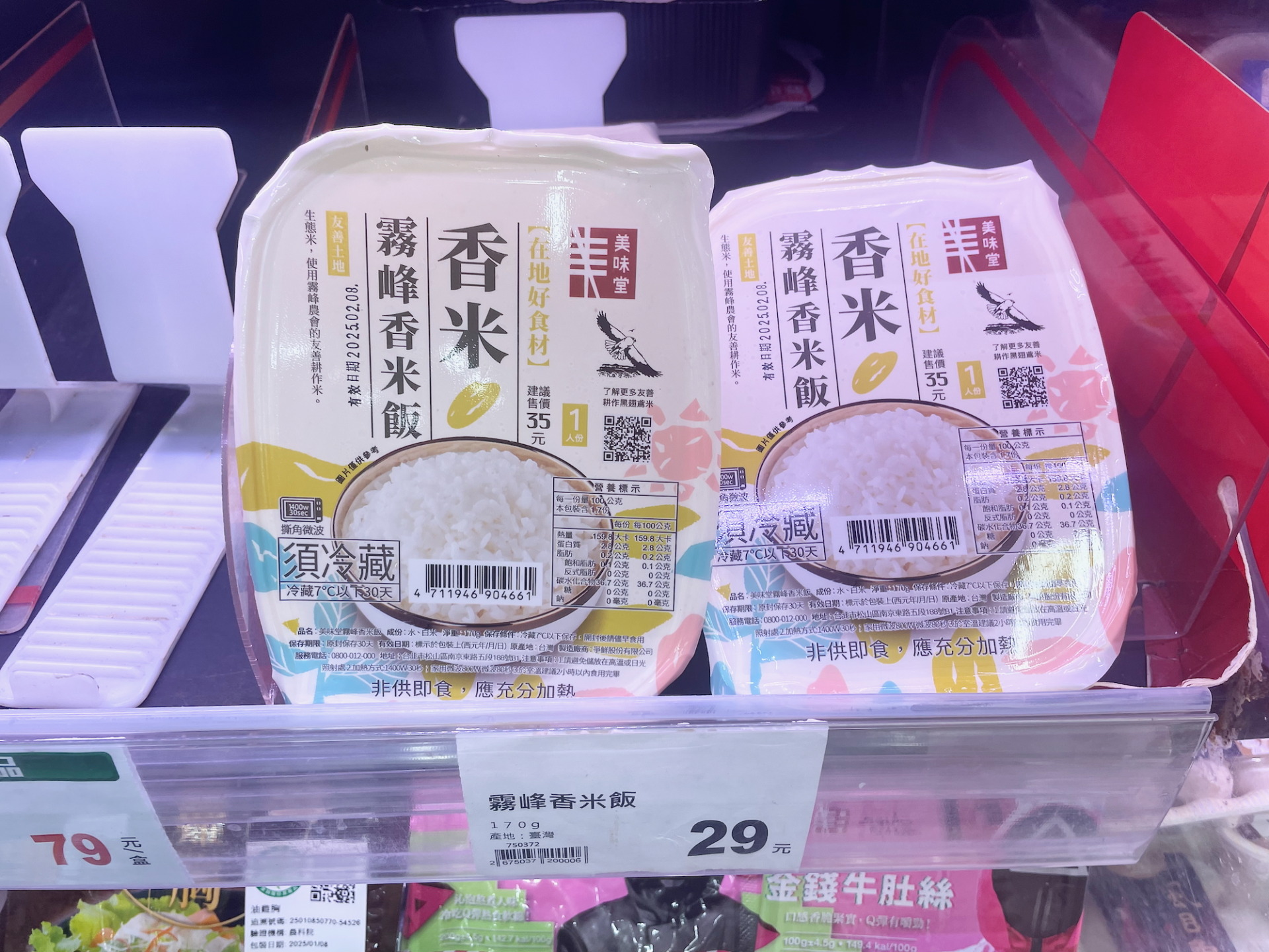 全聯超市架上販售的加熱即食米飯,來自台中市霧峰區農會。黃景建指出,起初接洽時,農會擔心定價太高、賣不動,但去(2024)年上架至今,銷售量持續上揚,今年截至 9 月,每月平均出貨量較去年同期成長 20 % 以上,推測原因為大型超市及超商所售便當、袋裝米飯都有一定水準,產品形態更方便、符合國人消費習慣及需求。