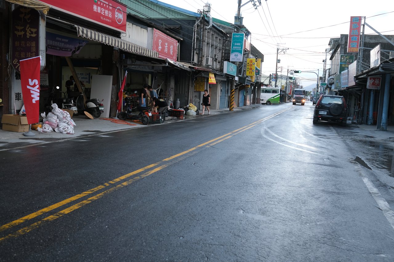 今日光復鄉雨勢斷斷續續,風神颱風帶來的降雨低於原先預測。記者走進光復市區,雖為上班日,街頭仍顯冷清。