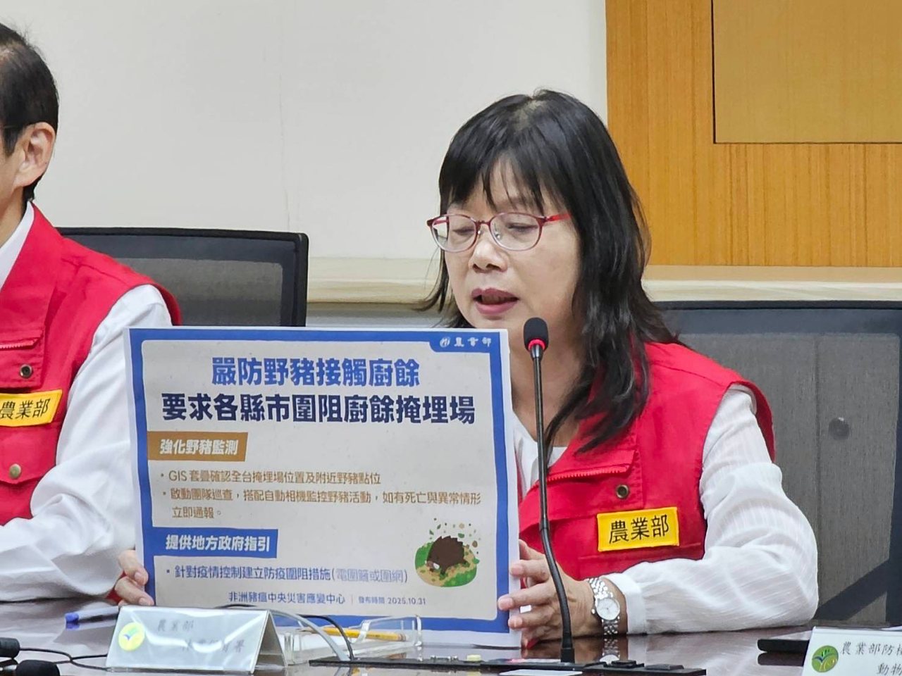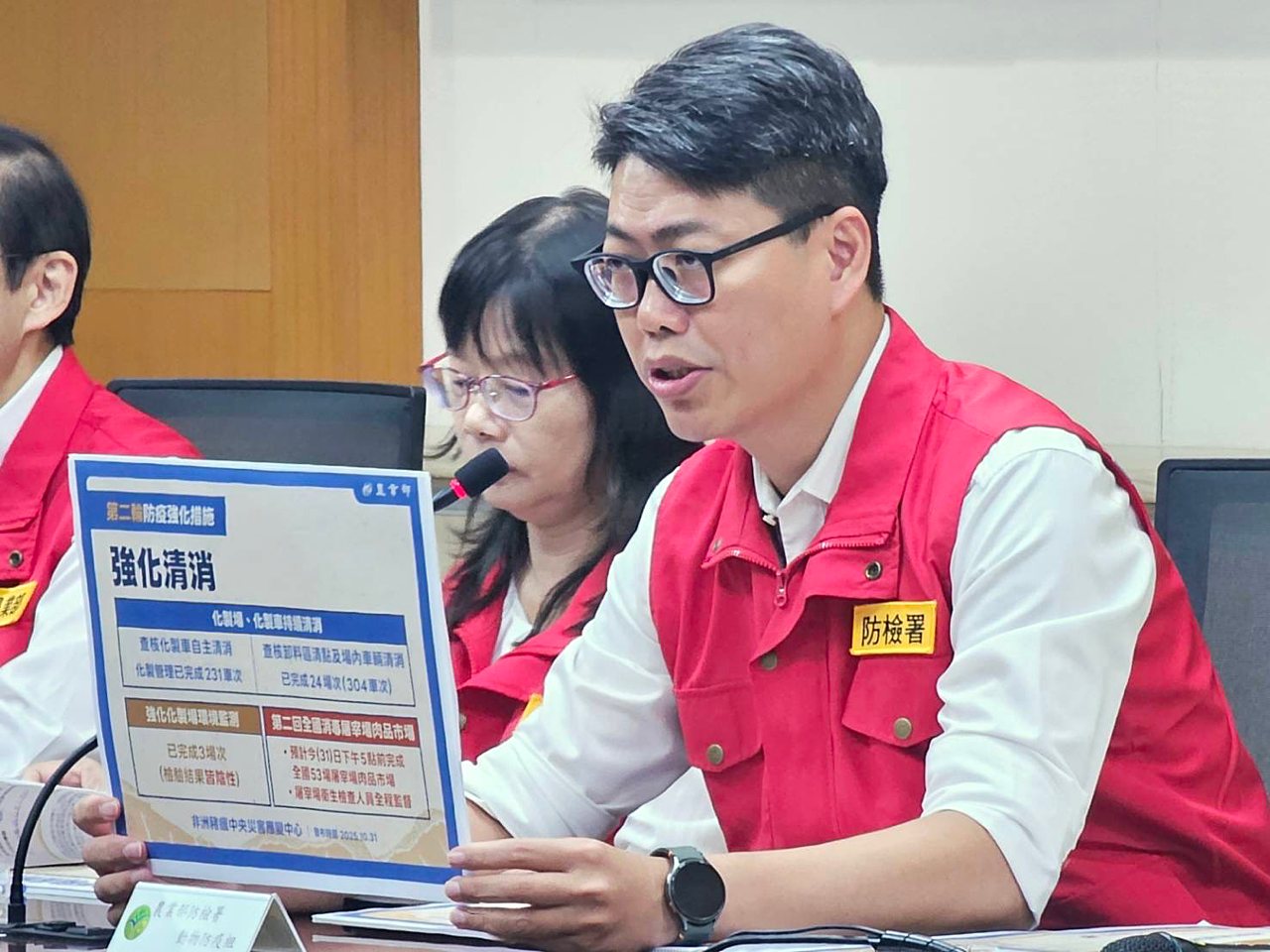 廚餘養豬戶部分,環境管理署北區管理中心主任魏文宜說明,10 月 30 日已完成首輪稽查全國廚餘養豬戶,目前發現新北有一戶並未上傳空槽照片,目前正進行第二輪稽查,已稽查 179 戶,目標於 11 月 5 日完成。