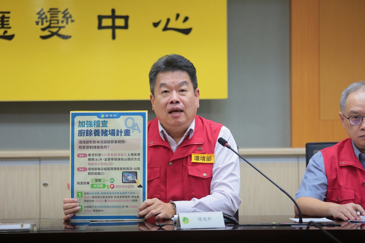 防檢署動物防疫組組長林念農說明,5490 家養豬場已訪視 3360 家,相對高風險場 712 場已完成 471 場(66.15%)、一般豬場 4778 場則完成 2889 場(60.46%),目前均無異常。同時也查核化製車(含踏墊、輪胎)及化製廠內環境,結果均為病毒核酸陰性。