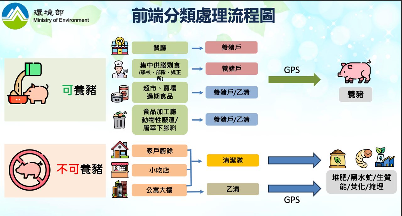 而為降低廚餘料源混雜的風險,廚餘養豬戶必須提出收取廚餘的料源場所清單,供地方政府審視、取得同意。此外,環境部將要求,地方清潔隊所收廚餘,均不可標售給養豬戶。通過檢查的廚餘養豬場,全國統一於明(2026)年 1 月 1 日起,可開始蒸煮使用廚餘養豬。
