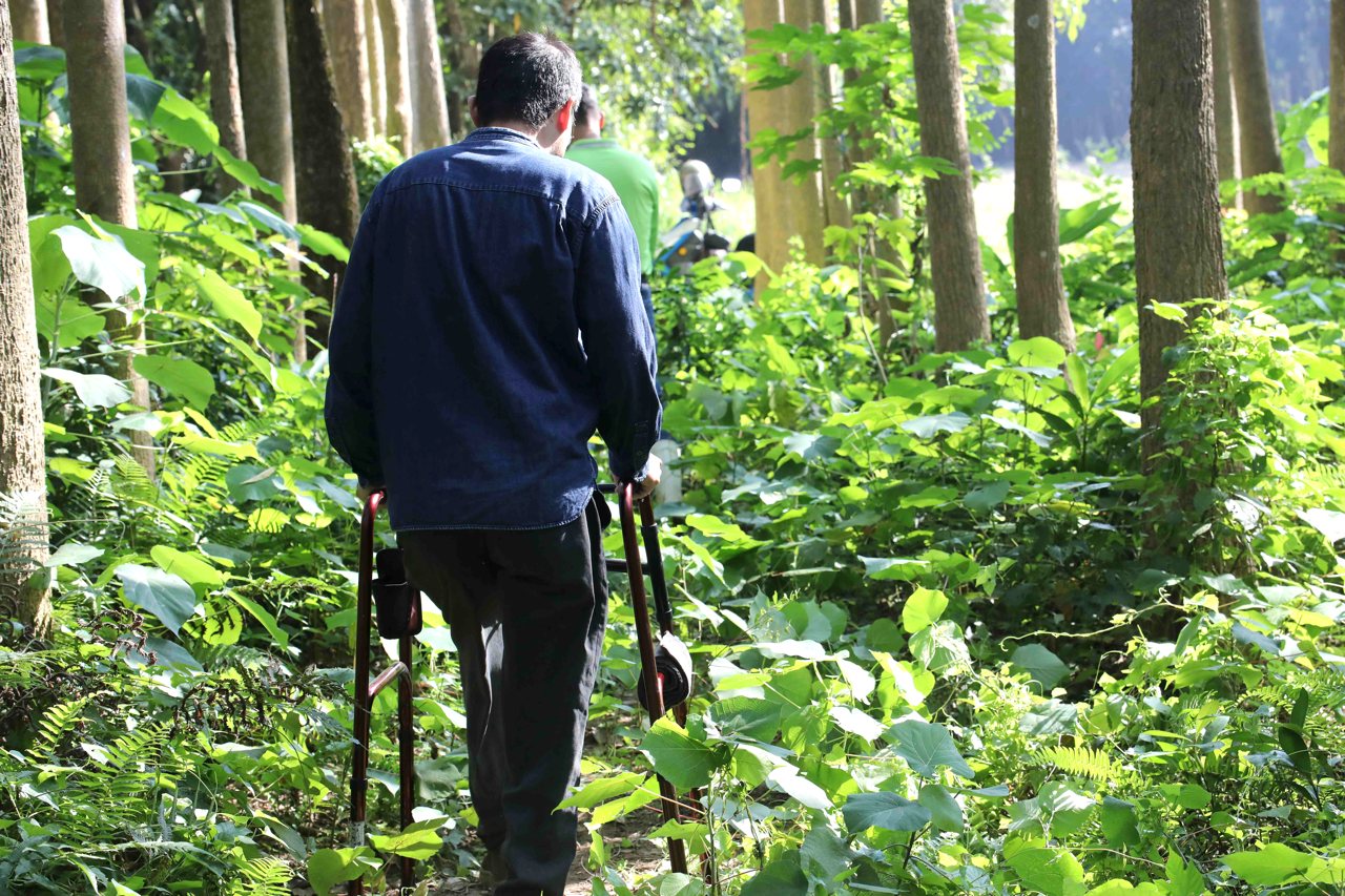 為了踏查橋頭糖廠林地的生態,他藉著助行器在林地裡舉步維艱,緩慢前行。然而他毫不在意身體的不便,一無反顧地投入守護森林的行動,並鼓勵市民勇敢表達意見,扭轉錯誤決策。