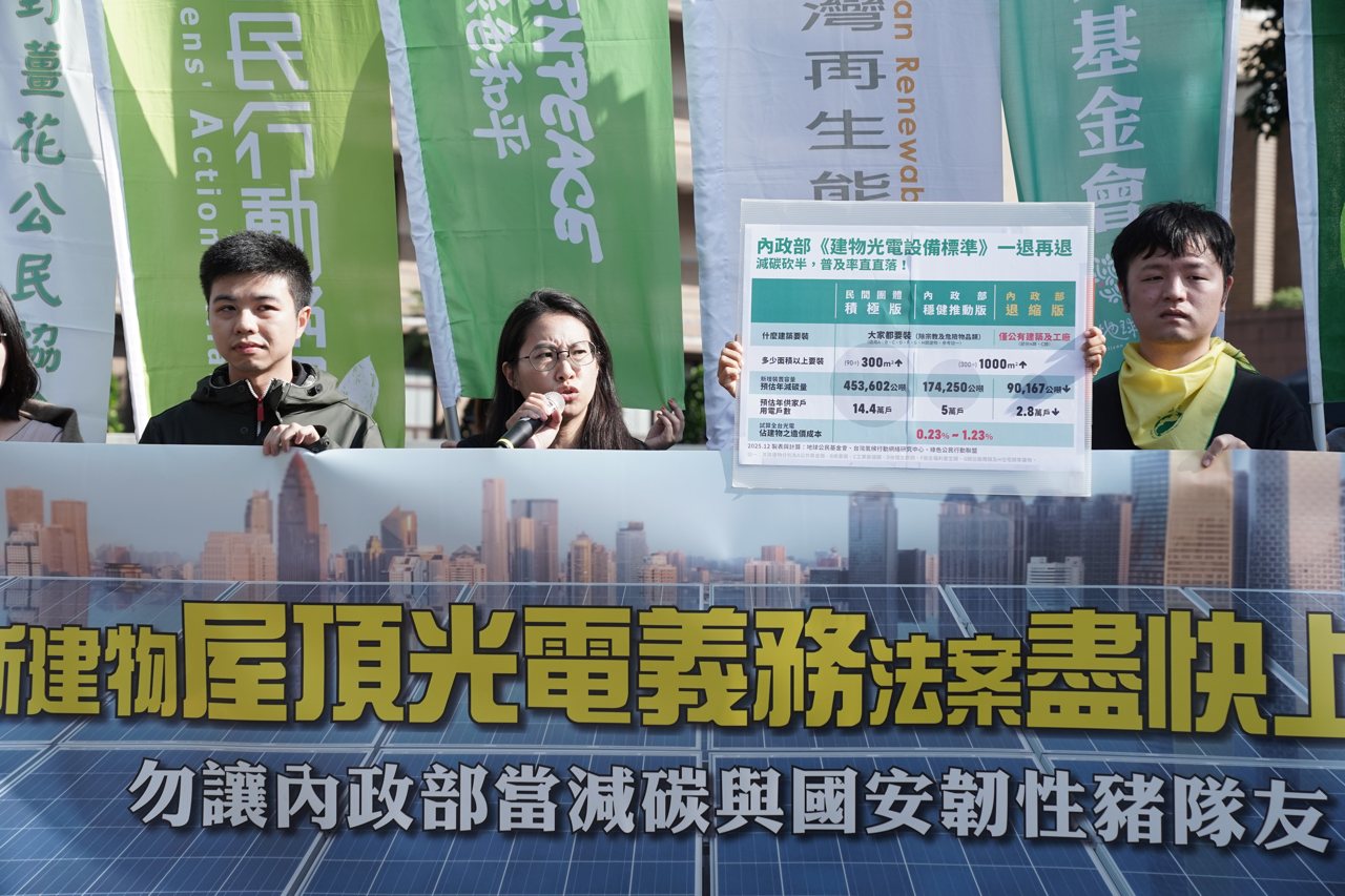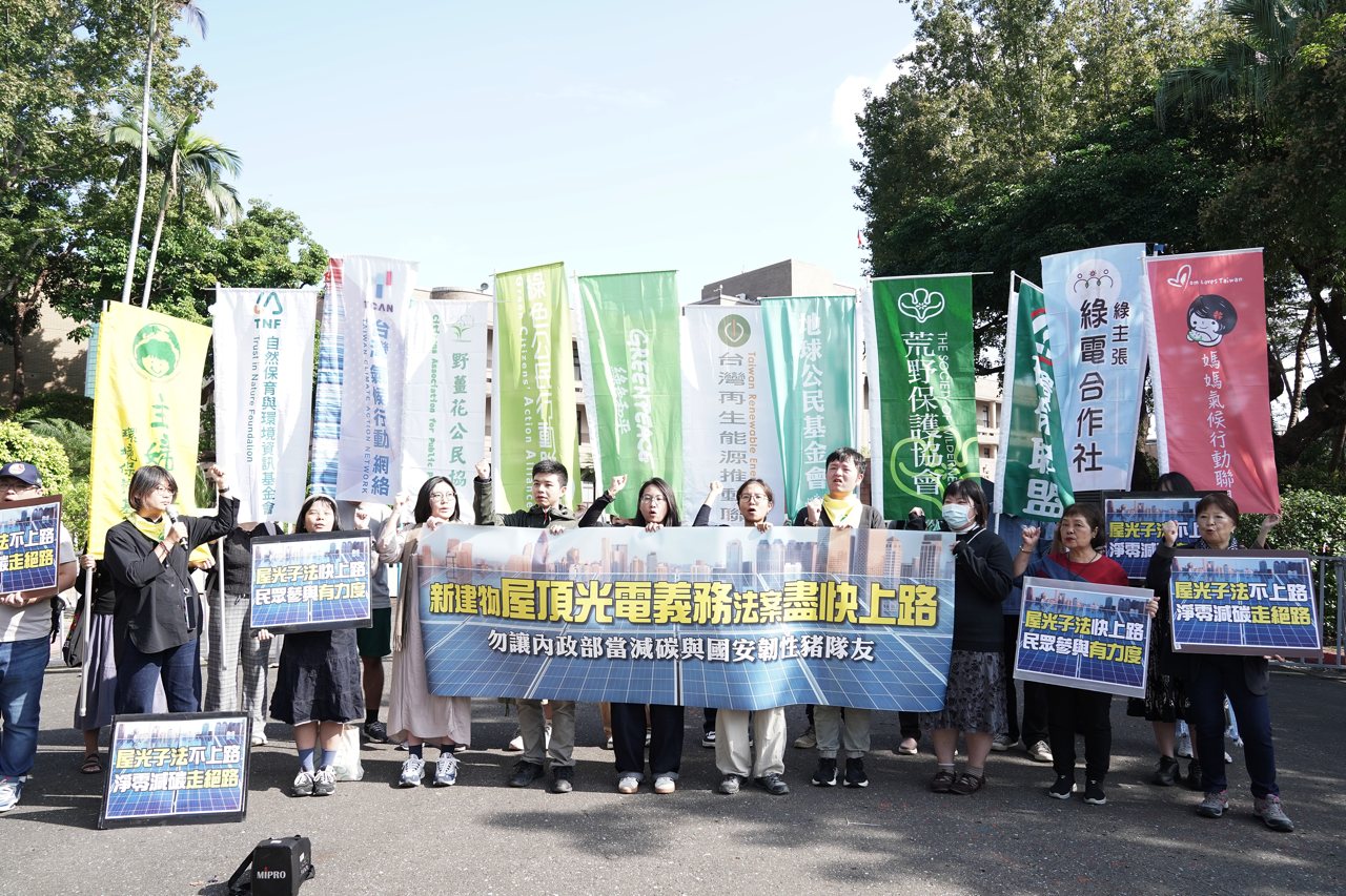 民團聯合呼籲,內政部應儘速公告《建築物設置太陽光電發電設備標準》,並維持原建物之光電設置適用範圍,且上述建物設置光電義務不應分階段施行。