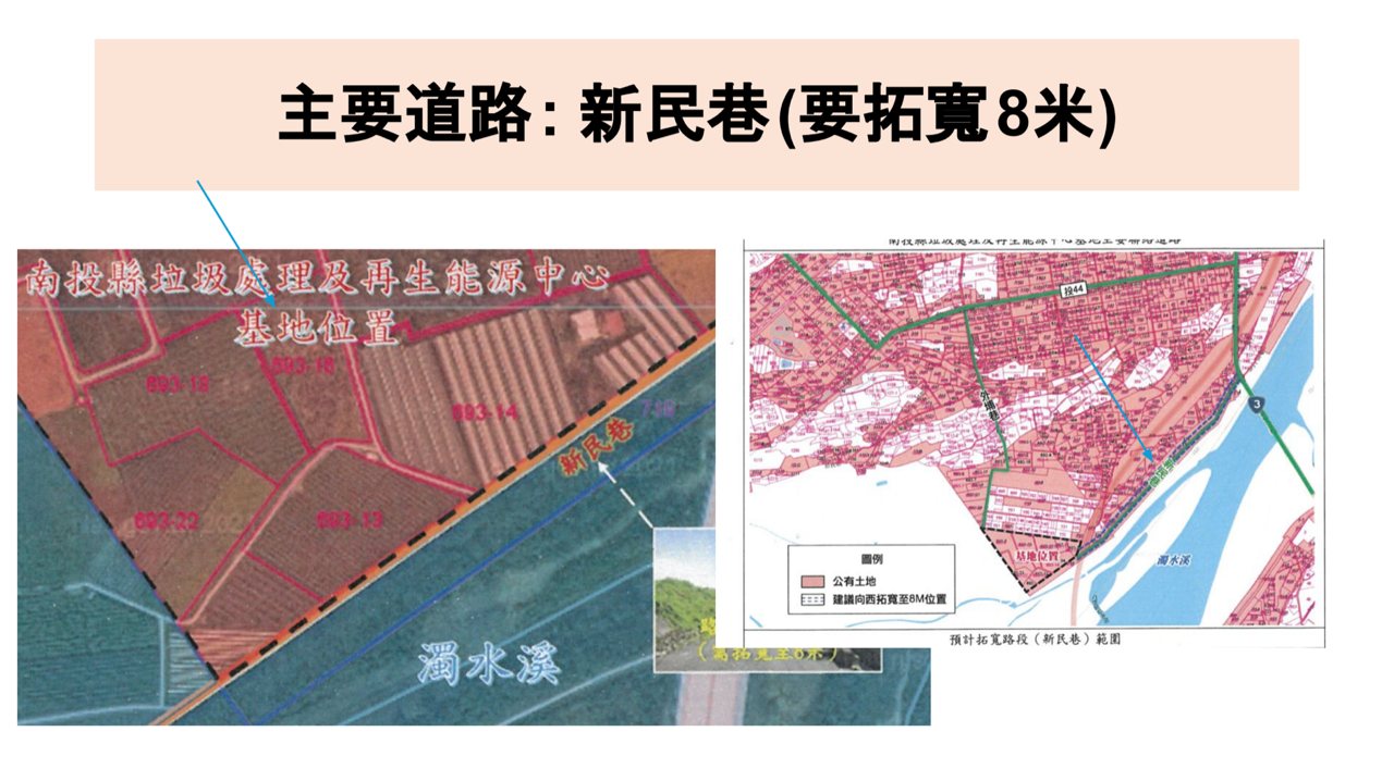 四河分署副分署長賴朝鵬證實,南投縣政府曾在 2025 年4 月來函表示,要拓寬新民段路寬到 8 米,四河分署雖函付同意接管,但 5 月舉辦會勘後,因涉及擴寬工程與土地徵收,縣府會勘後便無下文,因此接管程序也尚未完成。