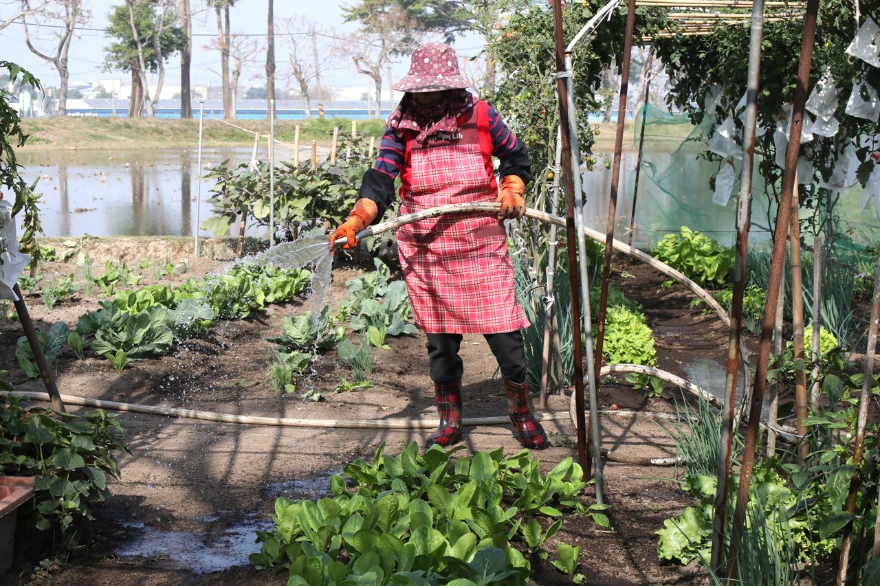 大家口中的「張媽媽」——李月治,今年 92 歲,家族提供土地成為農場現址,她也成為眾人的「種菜導師」。每天早上七、八點,她準時到農場報到,在菜園裡忙進忙出;忙完農事,還會回到屋內泡茶招呼大家。日復一日,讓許多成員形容:菜園像另一個大家庭。