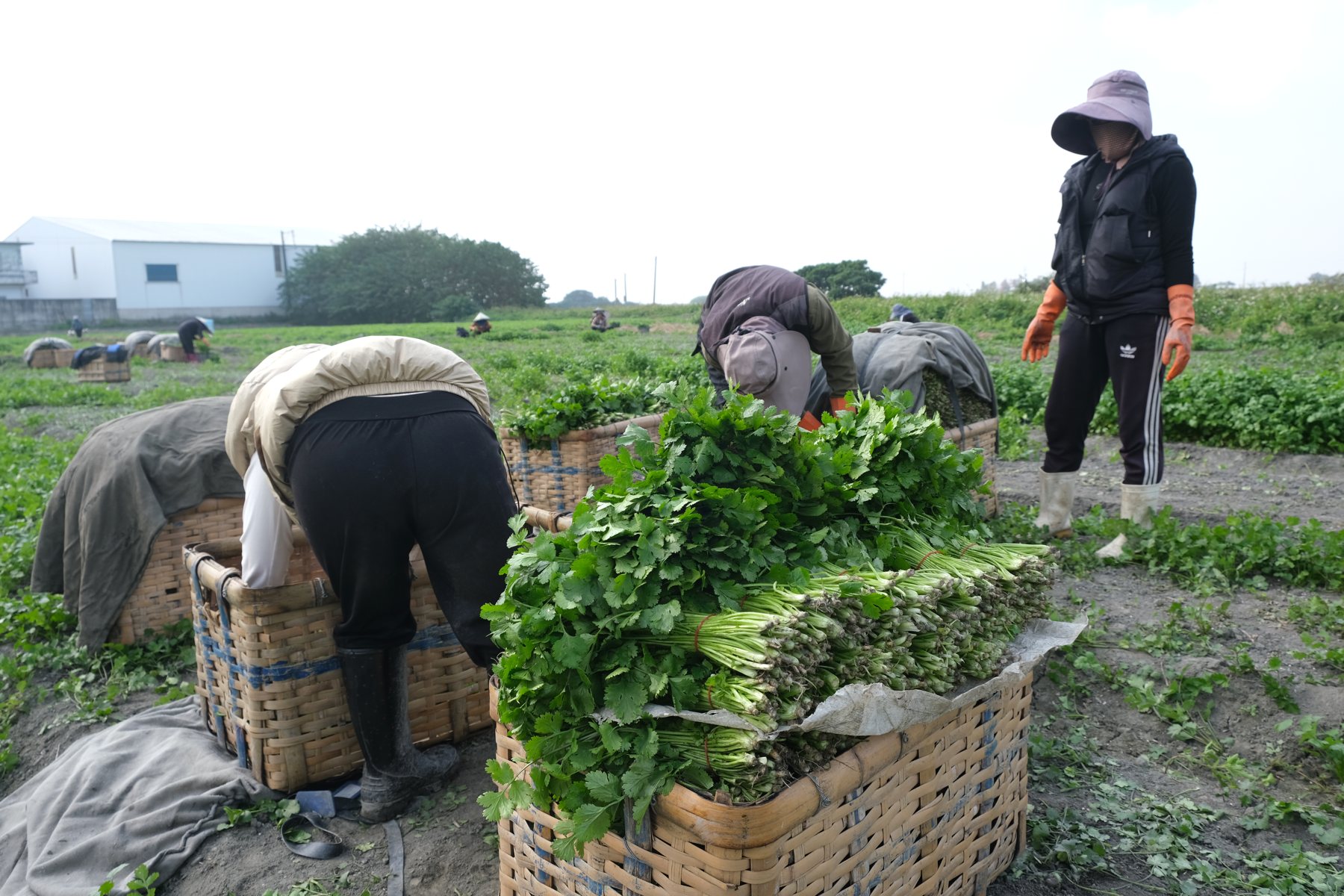 採訪當天,他從午夜 12 點開始收割自己的菜,接著幫其他農民收割、噴藥,直至傍晚採訪結束,他還要回田裡忙到深夜。「目標達成了,明年就要回家管教兒子,」阿文笑著說。