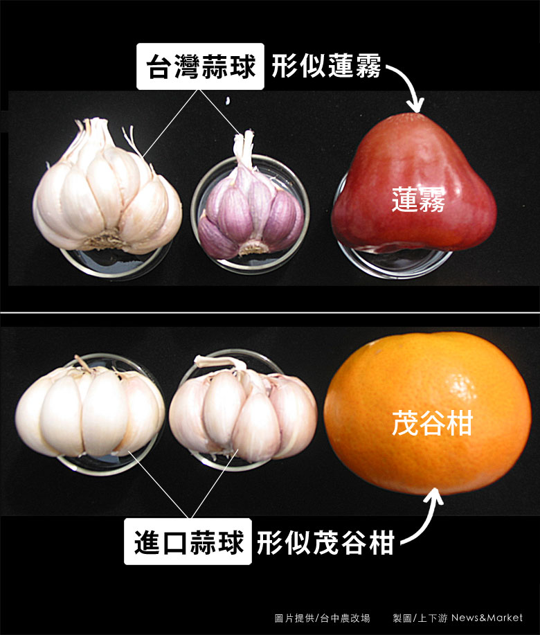 國產蒜與進口蒜有什麼差別?台中區農業改良場蔬菜作物科副研究員錢昌聖表示,台灣主流的「大片黑」品種屬於硬骨蒜,蒜球形似蓮霧、蒜瓣上下交錯插瓣生長,且中心蒜梗明顯,具備新鮮、辛辣且蒜香十足的特徵。(深入閱讀點選這裡)