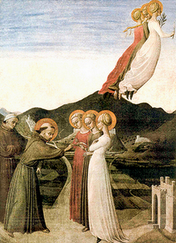 圖7是Sano di Pietro (1406 – 1481) 於1449年的畫作,牧羊人在丘陵上接受天使詔告,大地上的道路經過規劃,作物和土地顯示頗受照料。