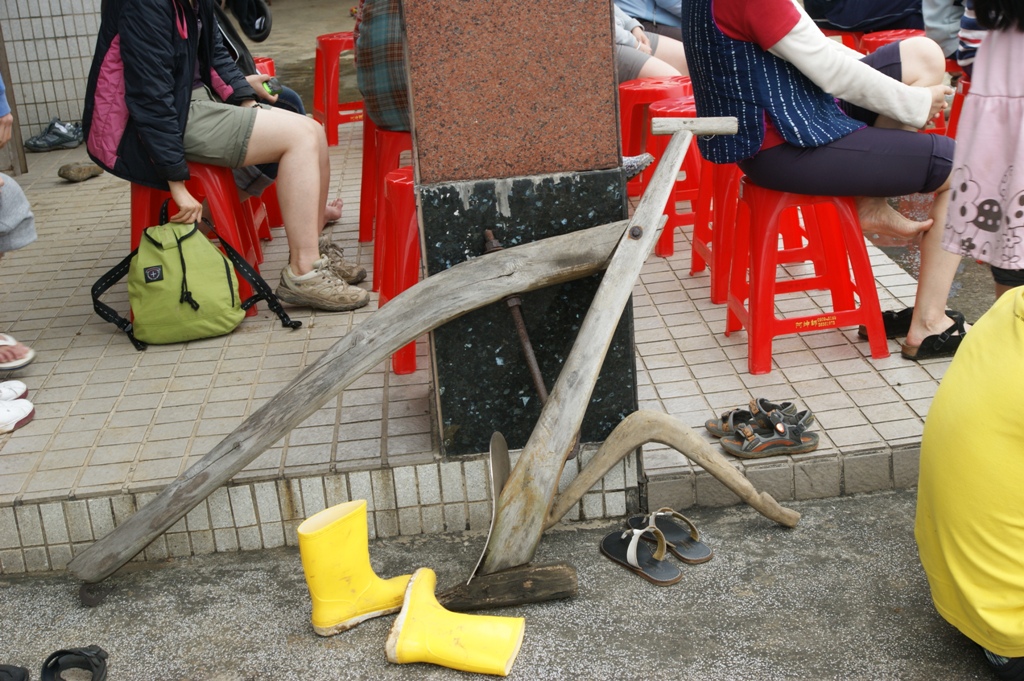 午飯休息過後,駿富大哥就準備開始教大家如何插秧,首先先跟大家介紹古早的農具,有牛拉的犁還有裝秧苗的竹盤和竹婁,都是淑珍的阿公留下來的。