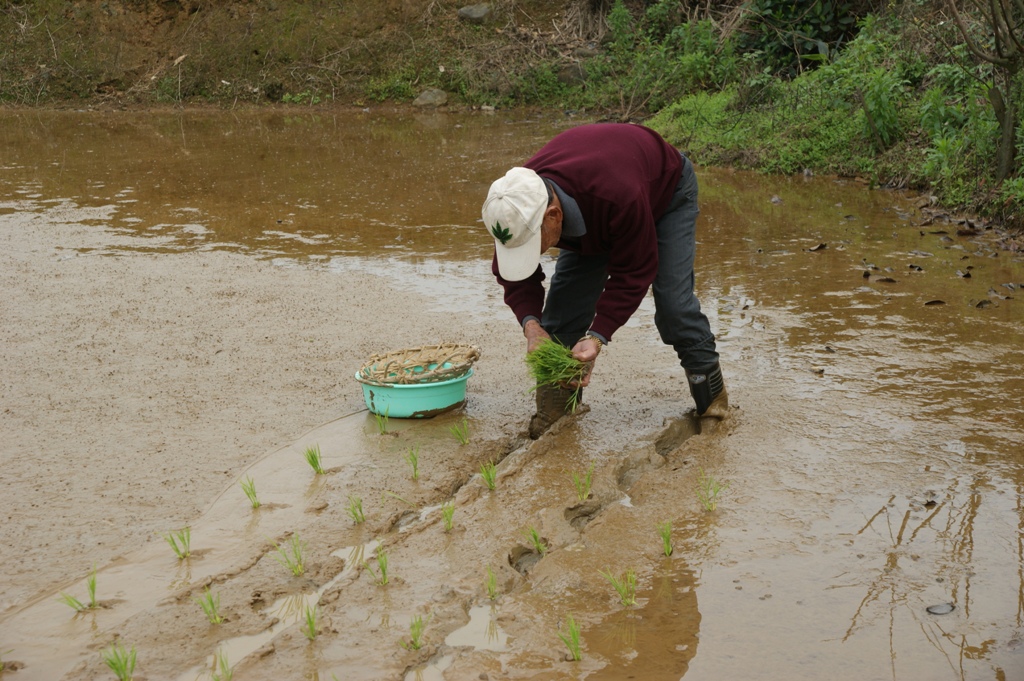 話說淑珍的阿公已經93歲了,今天插秧還是忙進忙出一整天,身體超硬朗的,令我們大家相當佩服,駿富的兒子還插話說:爸爸93歲時一定沒辦法種田。讓大家笑倒。不過阿公長壽健康的秘訣就是身體不停活動而且絕不吃任何加工食品,連薄皮水果也不太吃。