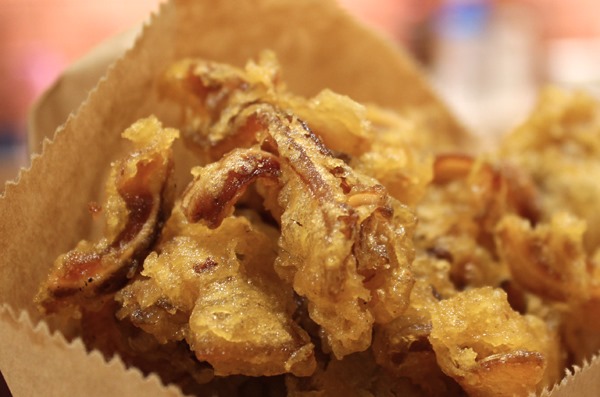 (左)台灣常以川燙沾醬手法處理的豬頰肉,林志豪花費較長時間熬出豬頰膠質,再煮成義式燉飯。(右)台灣常見的滷味豬耳朵,林志豪用酥炸的方式呈現。(下)不同部位的豬肉,適合不同的處理方式