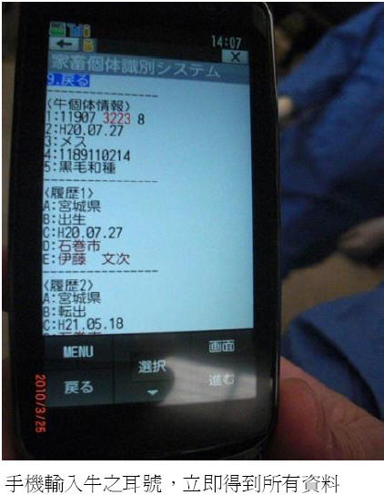 日本:行動電話查牛隻產銷履歷